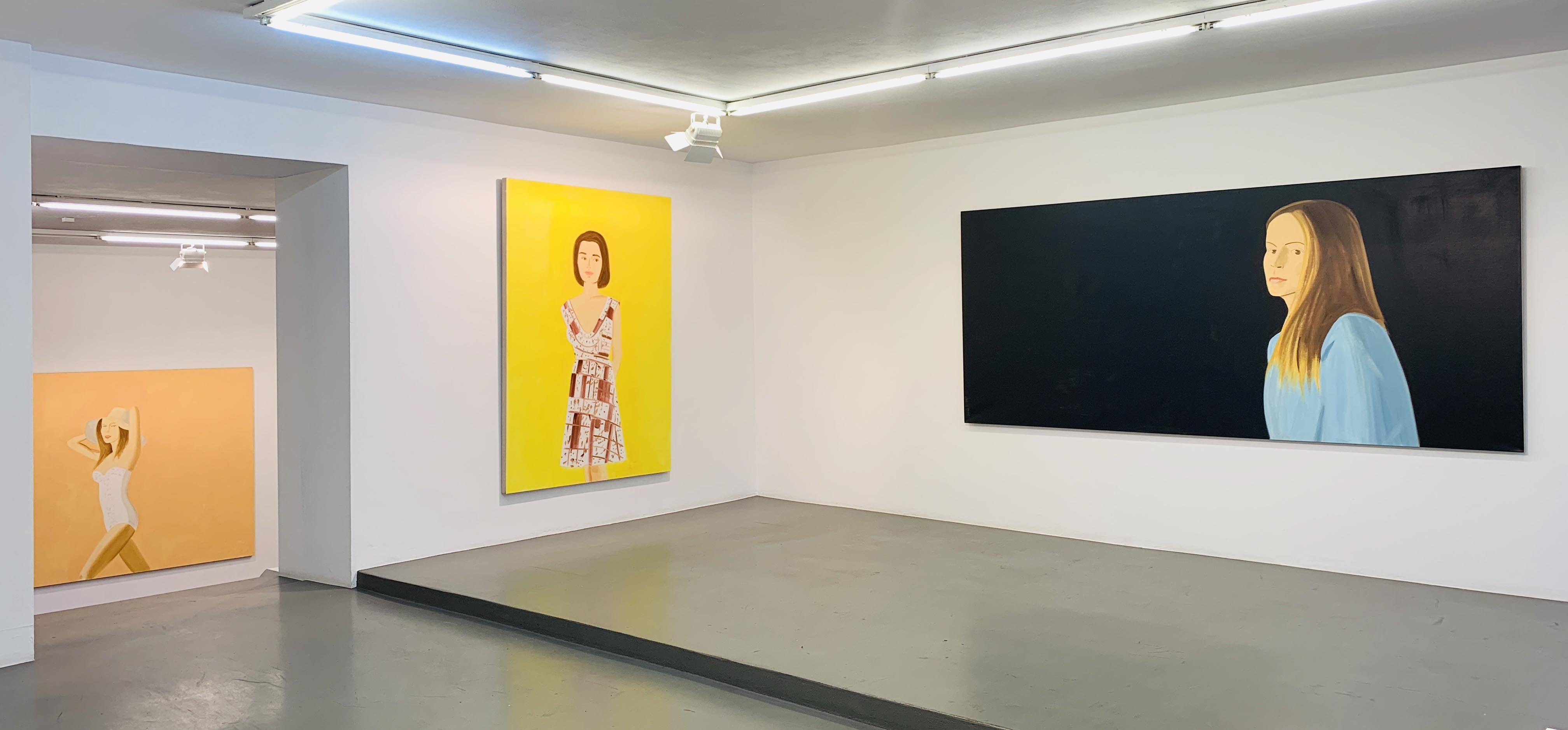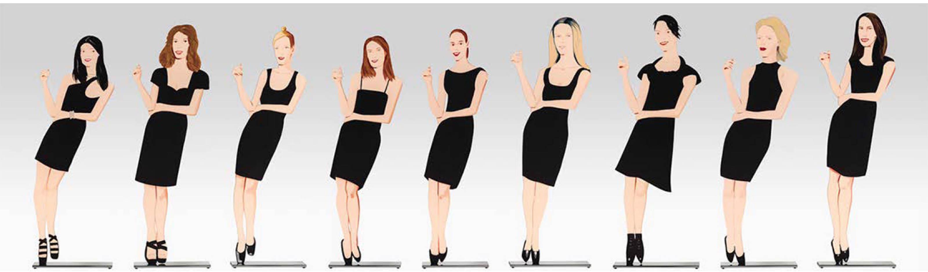 Alex Katz Black dress,2018 Powder-coated aluminium mounted to polished stainless steel bases Set of 9 figures from 61 to 68 cm high