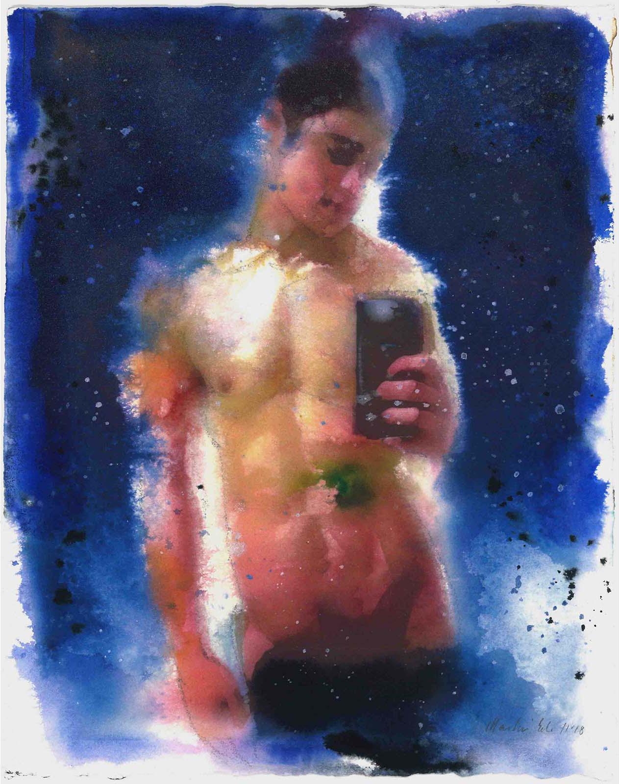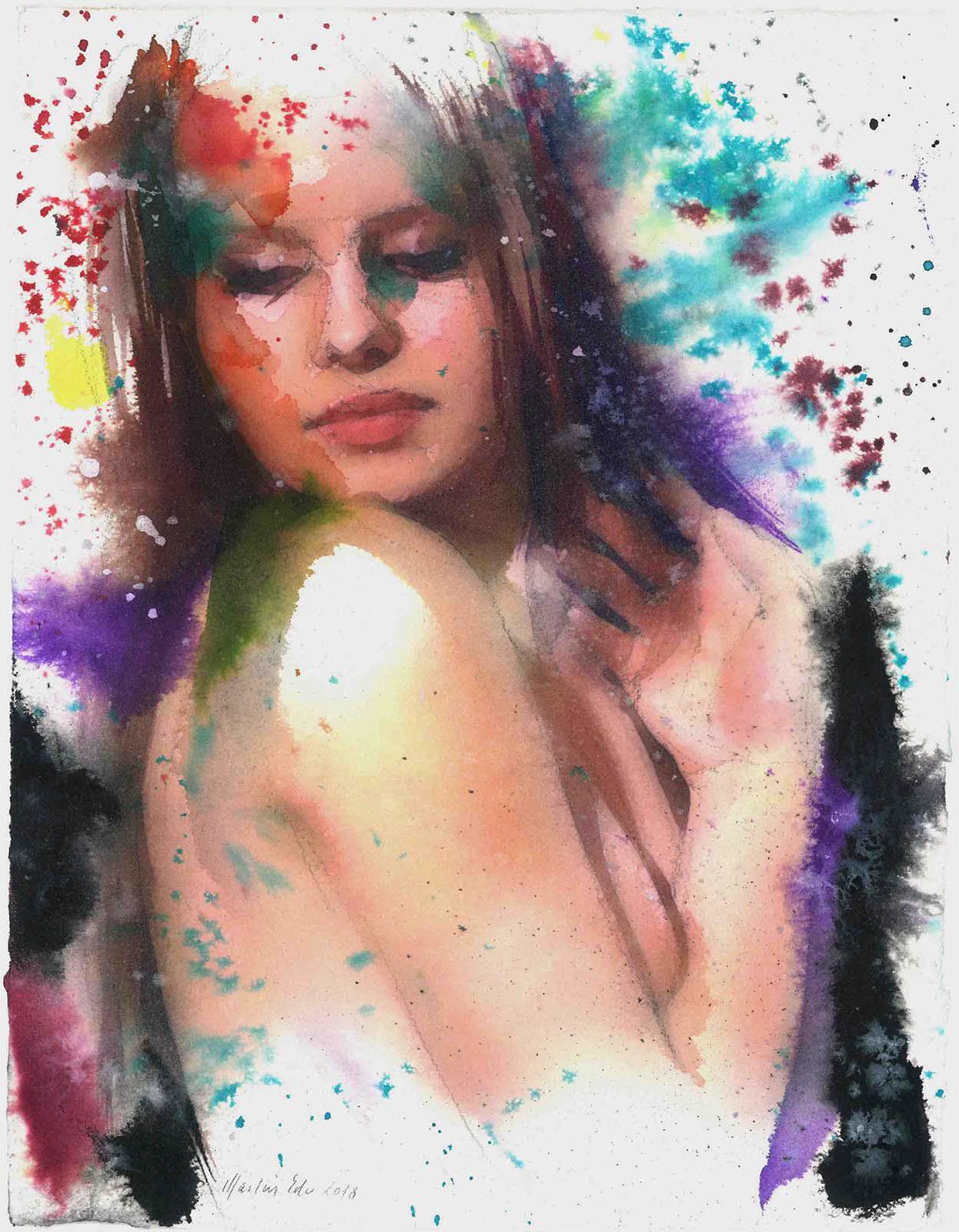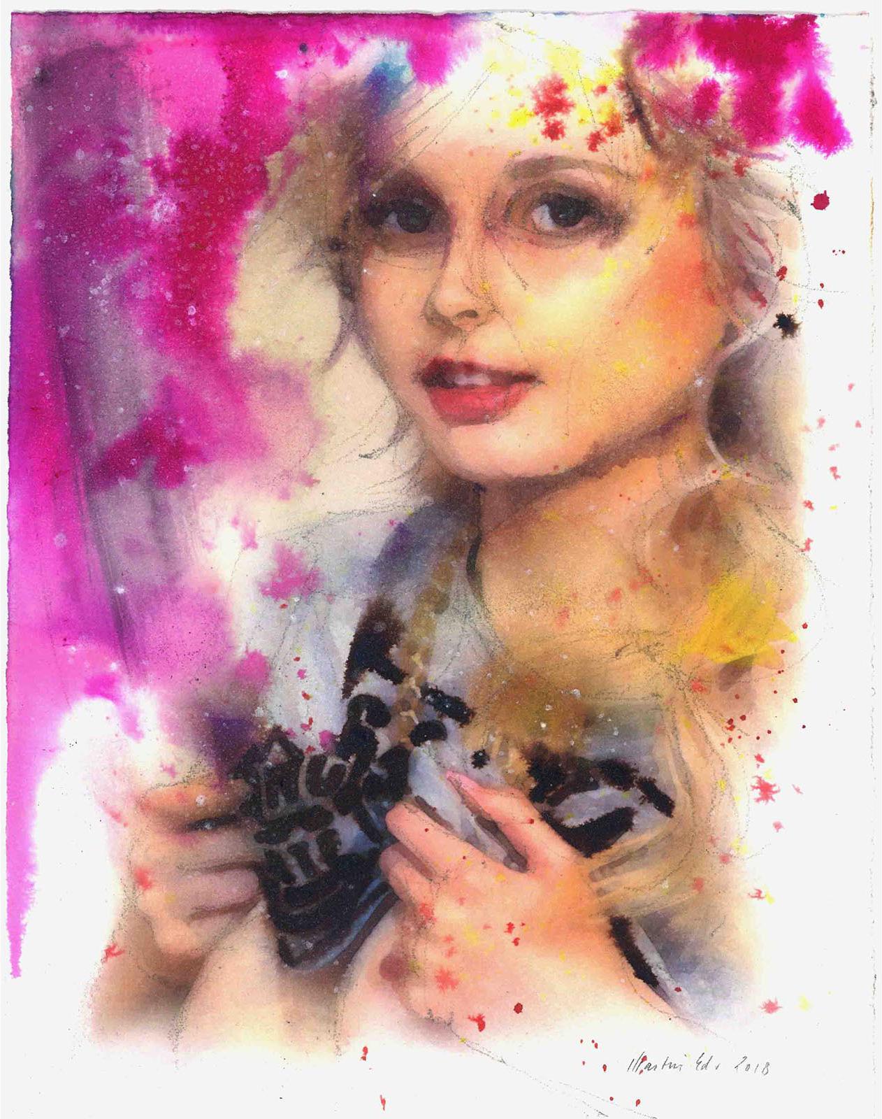 Martin Eder Untitled #9,2018 Watercolor and pencil on paper 28.5 x 23 cm