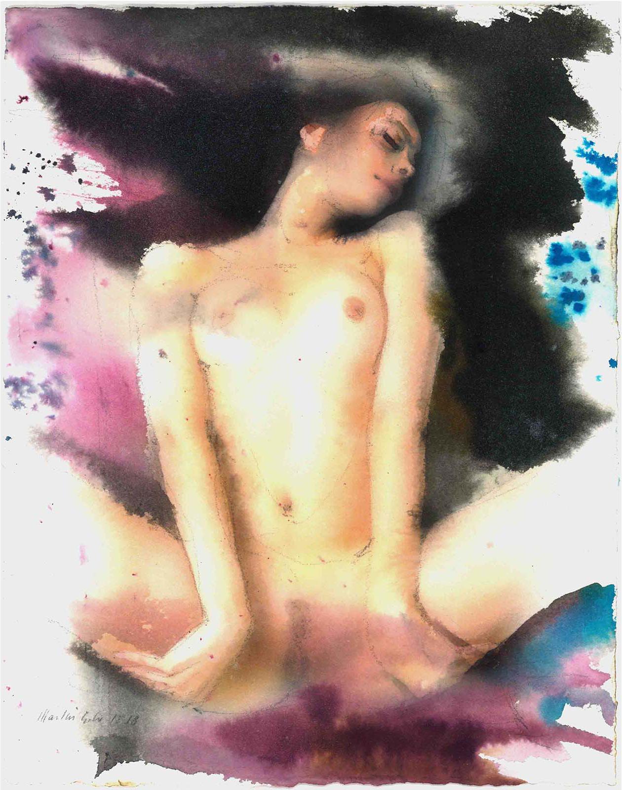 Martin Eder Untitled #13,2018 Watercolor and pencil on paper 28.5 x 23 cm