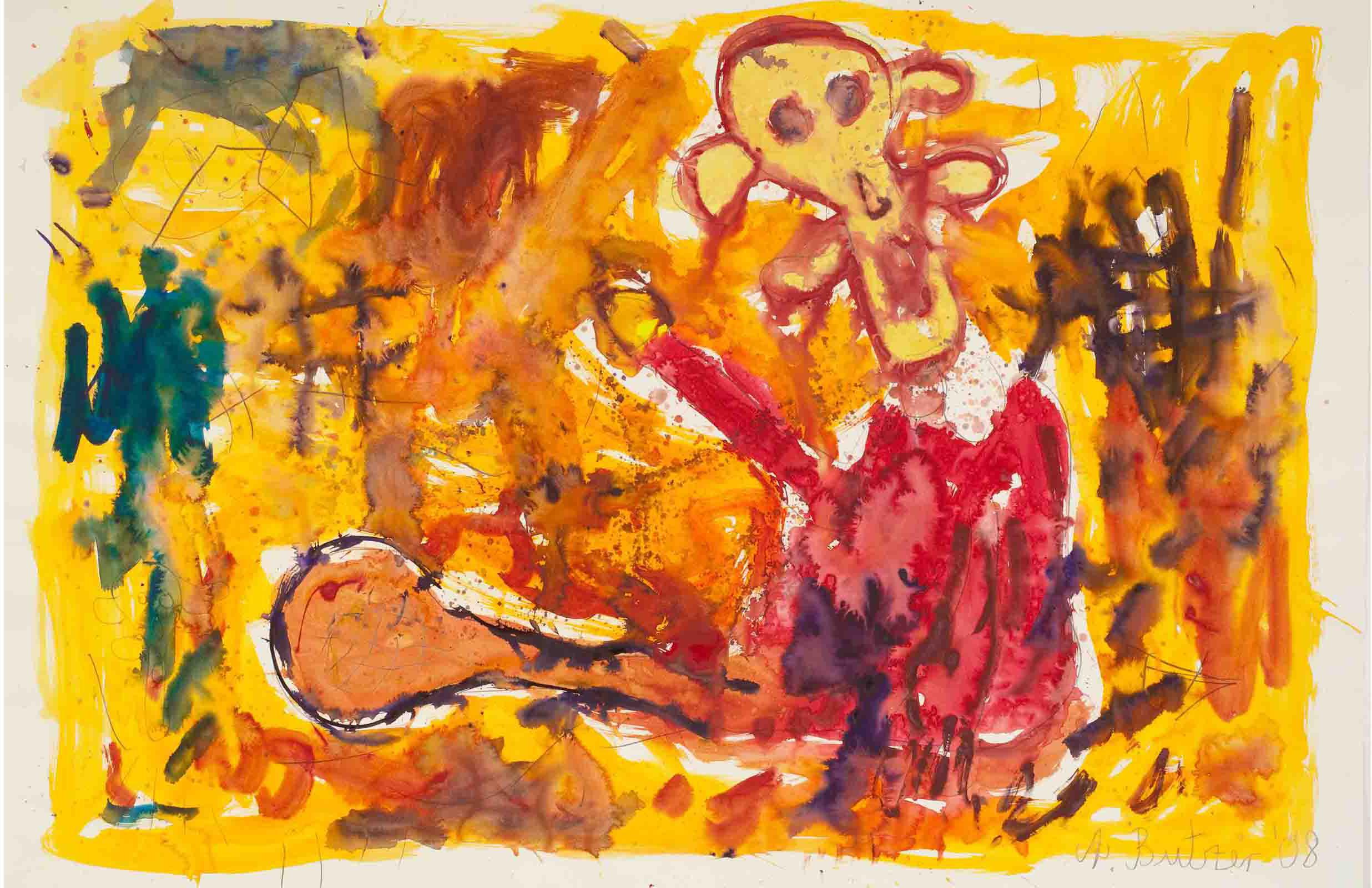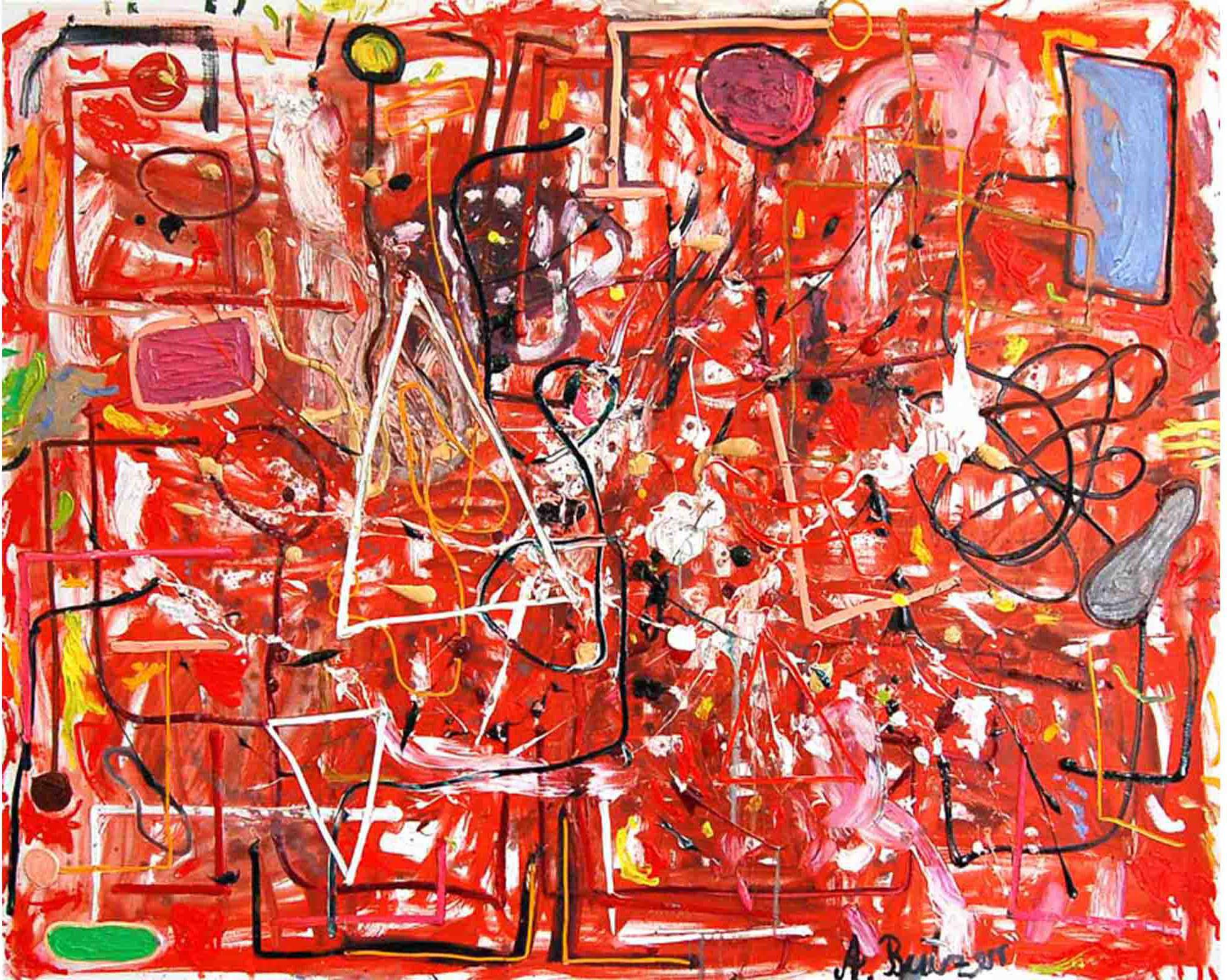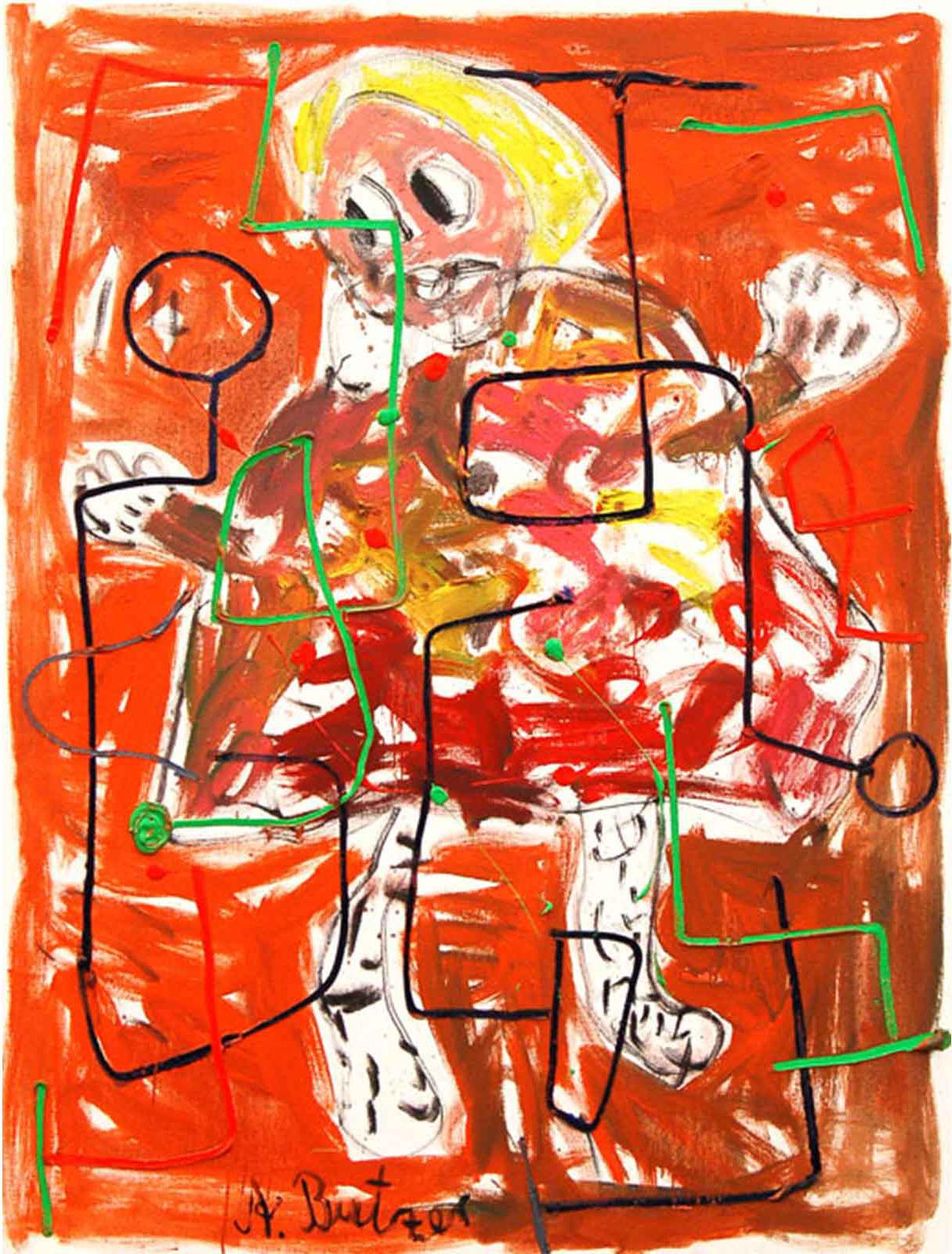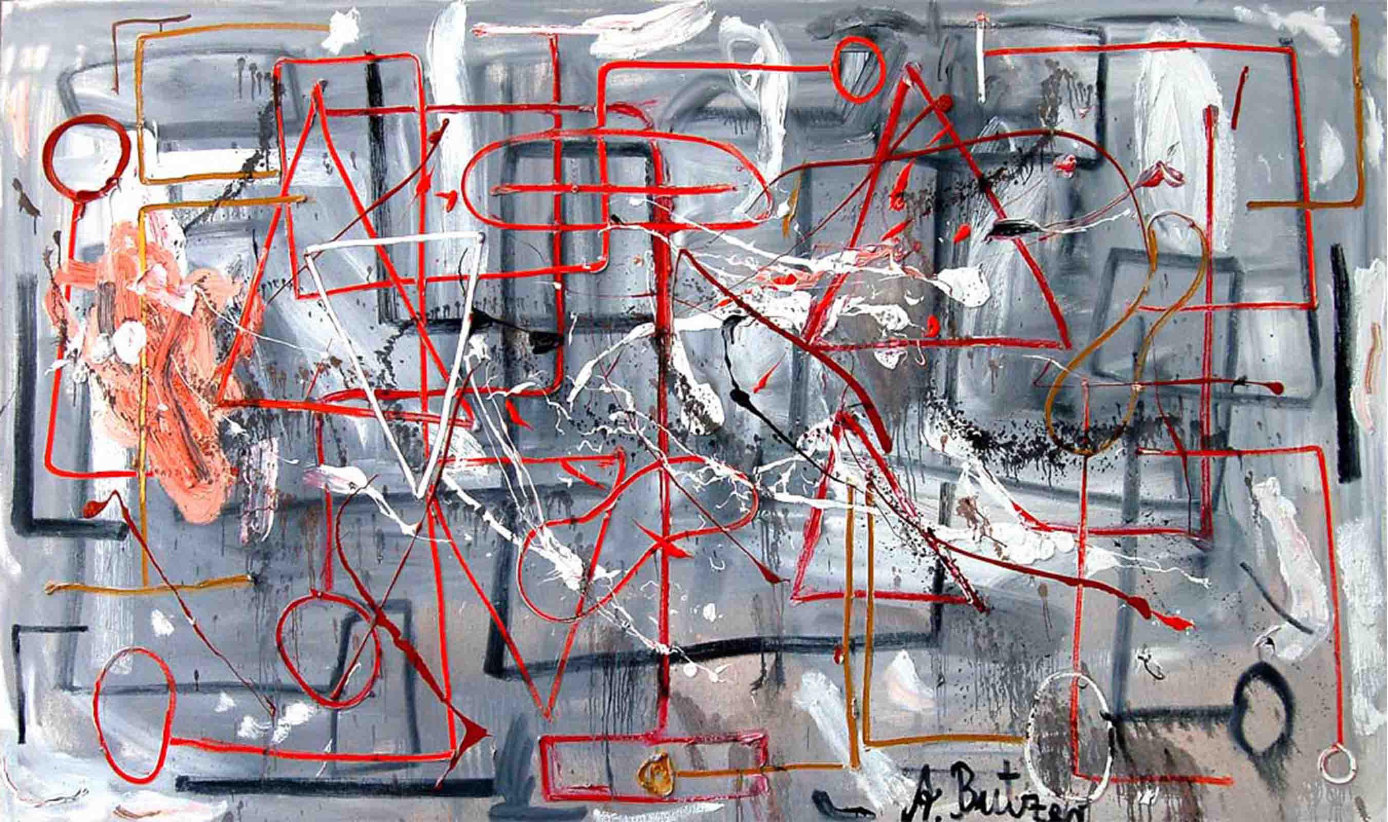 The power of Butzer’s work lies in the potency of his skill. His canvases embody creative energy in raw and pure form, and aggressively assert their monumentality through vehement mark-making, noxious hues, and highly corporeal surfaces which expand as ‘apocalyptic’ terrains. Butzer’s paintings confound with their eclectic lexicon of gesture, ranging from ‘outsider’ clumsiness, to articulate tenuity, and outrageously exaggerated brush work. His work exudes an unapologetic arrogance in its confidence and authority.