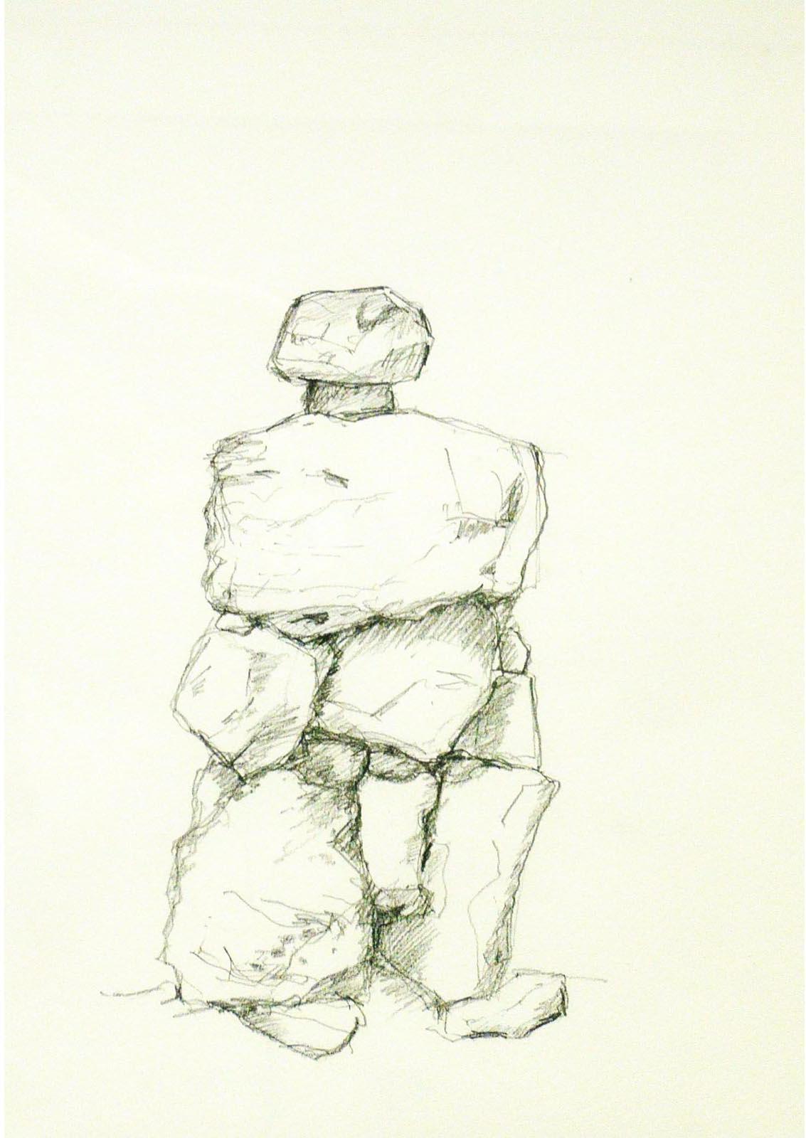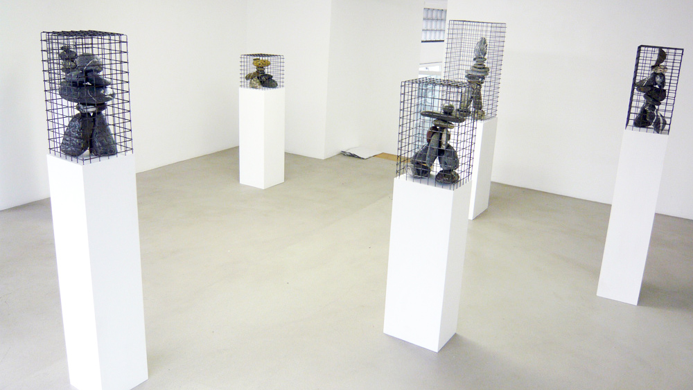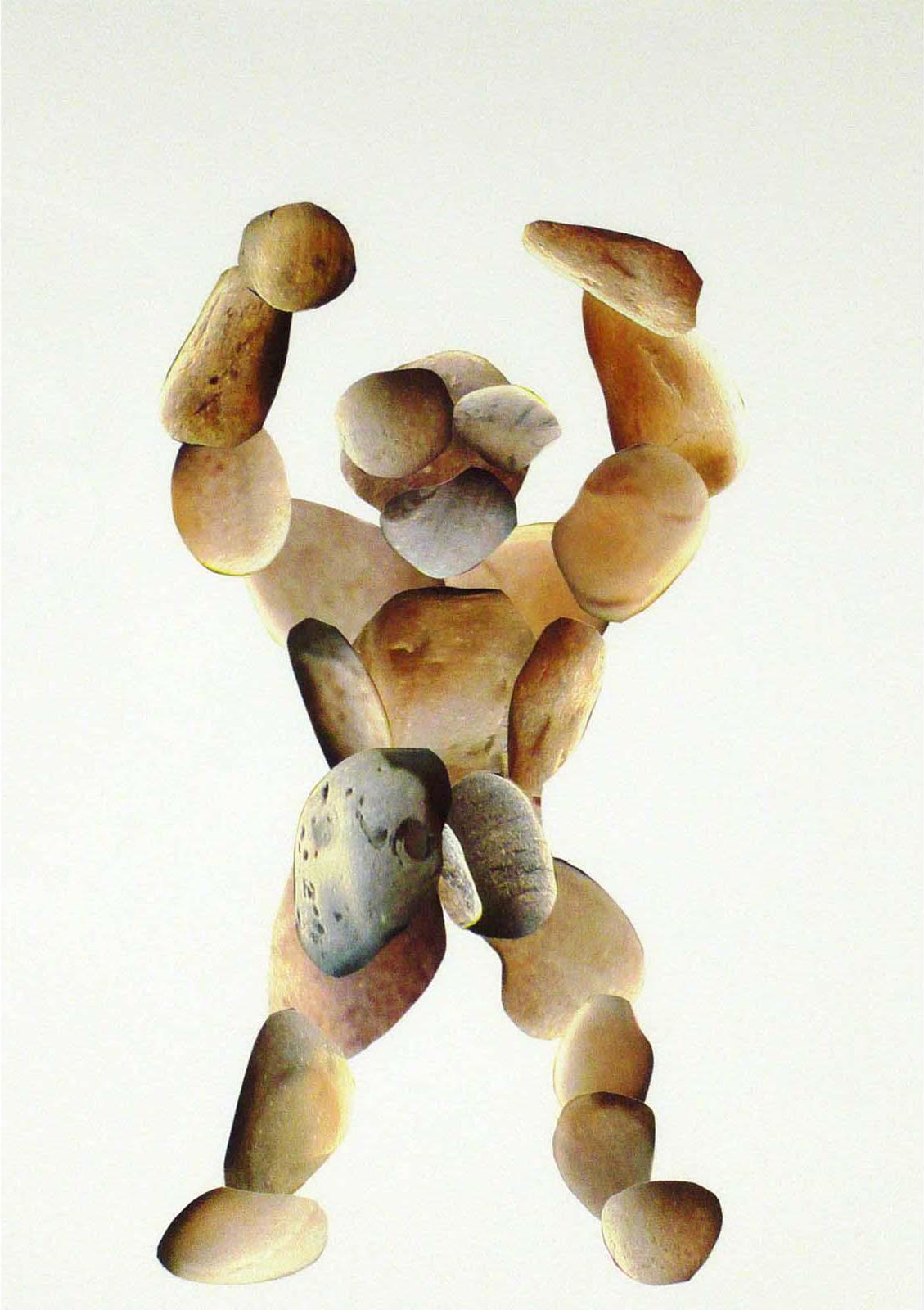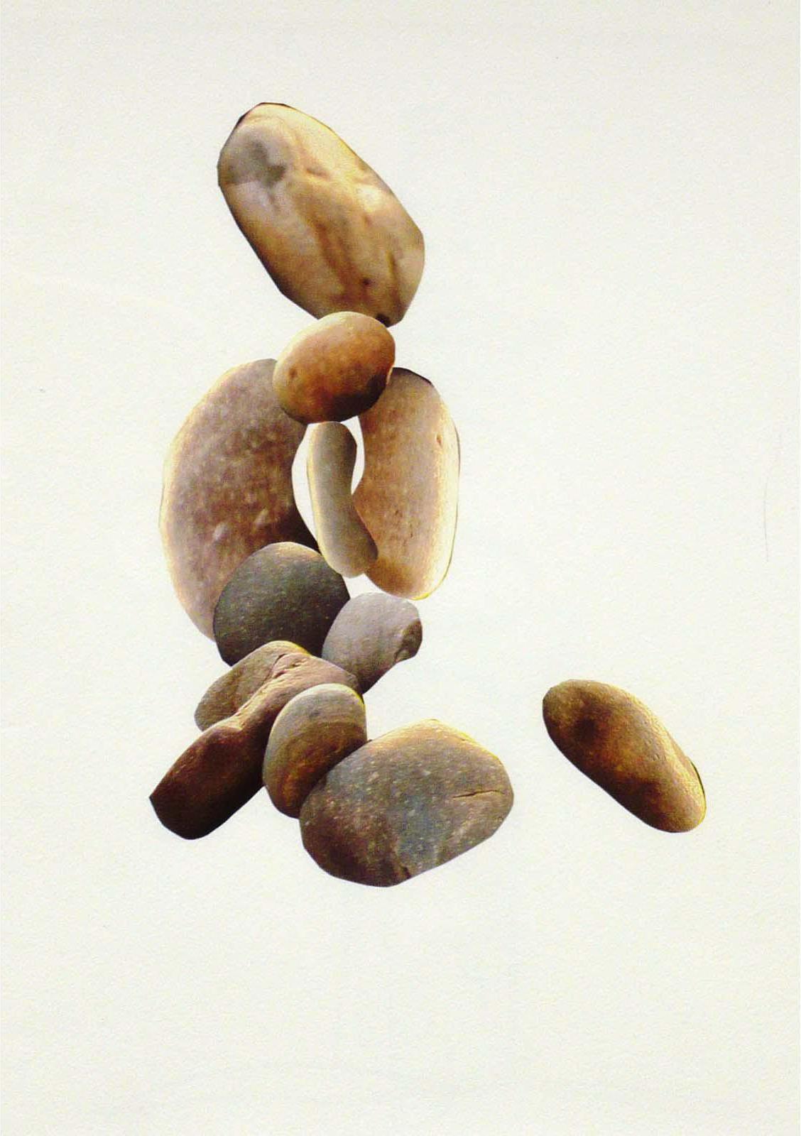 The strange elegance of Zaiser’s monuments is echoed through his drawings and collages. Beautifully rendered pencil sketches of cairns provide a model of authenticity for spatial subversion, their odd linear forms translating geological studies to abstract blueprints. His collages suggest weird ornithic figures that hypnotically oscillate between prehistoric fetish and futuristic design.