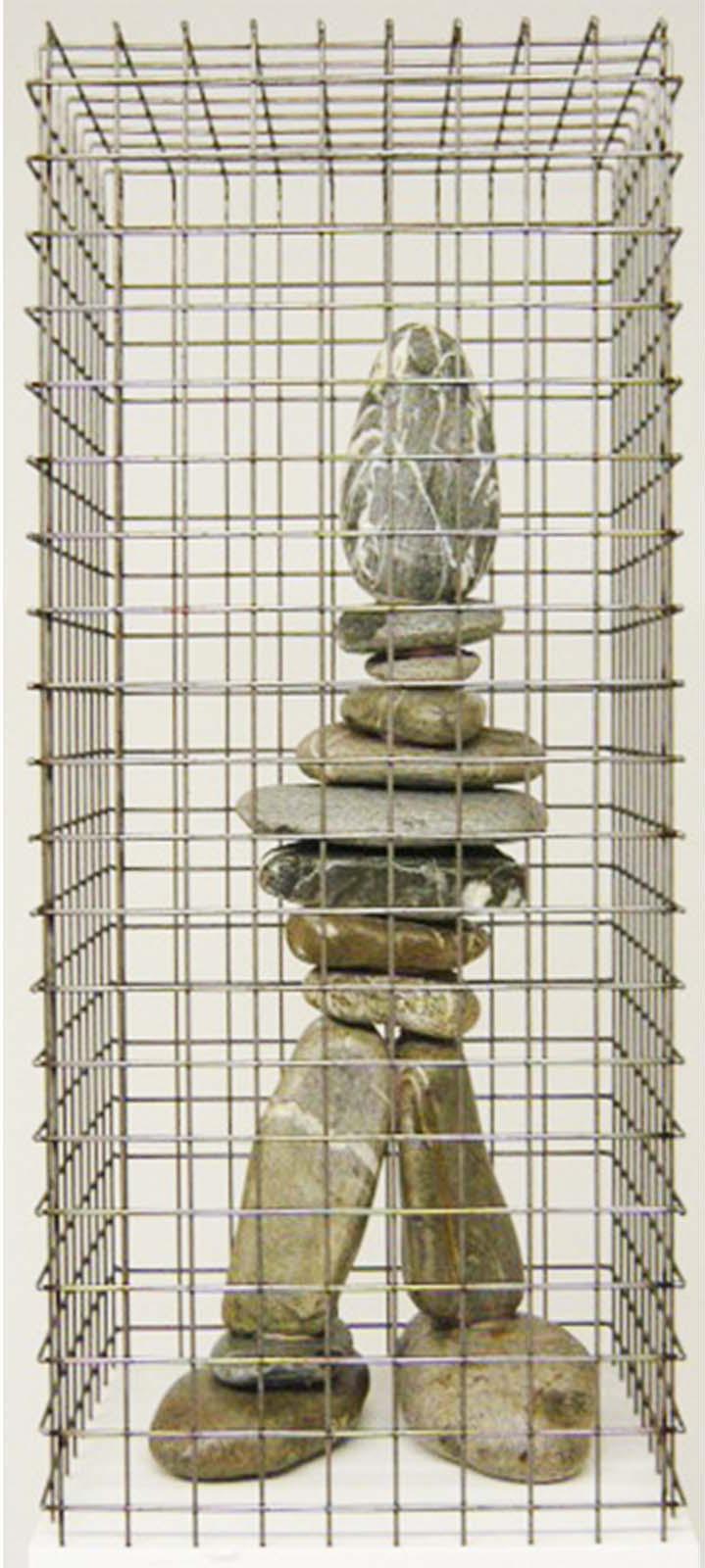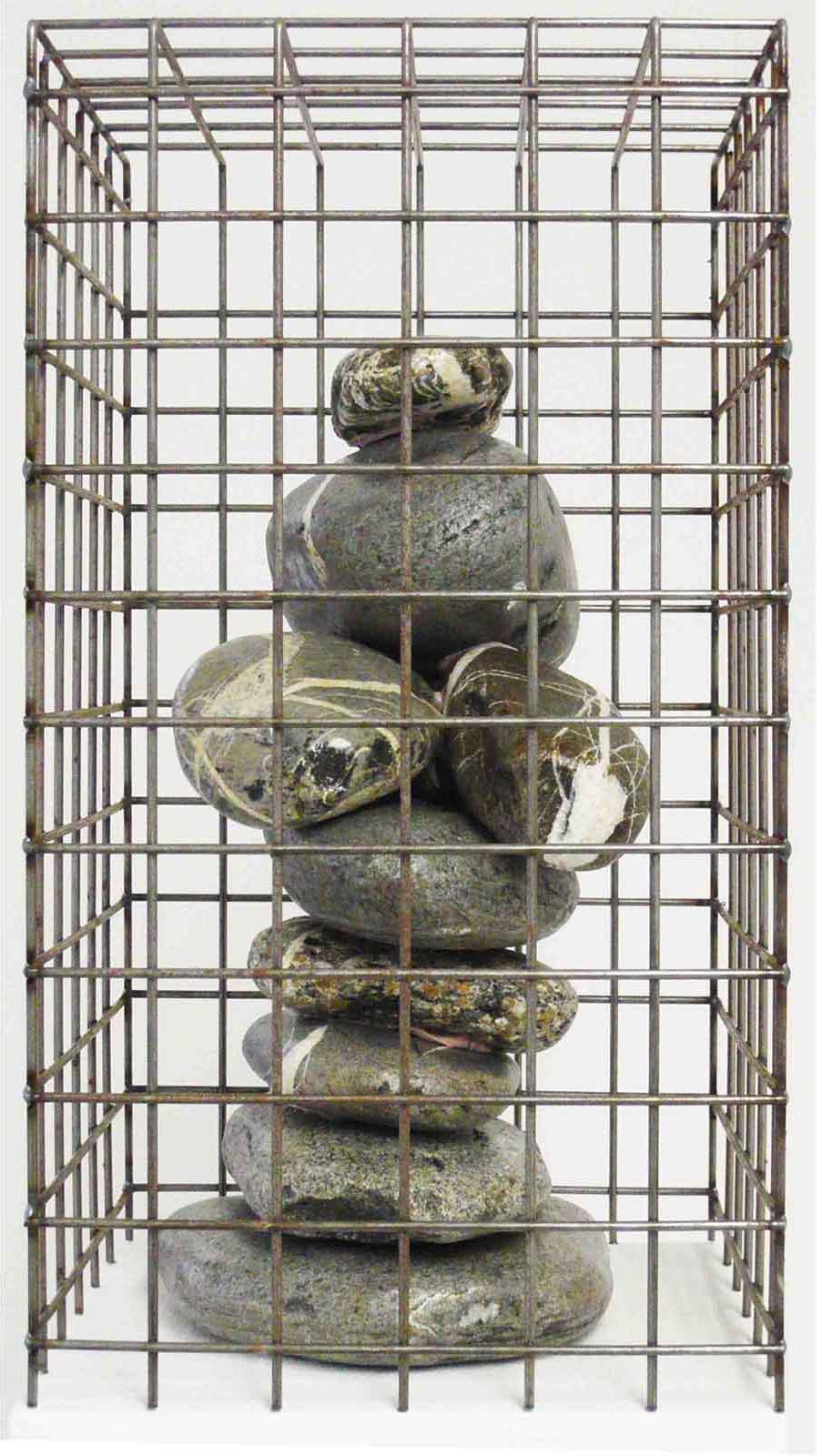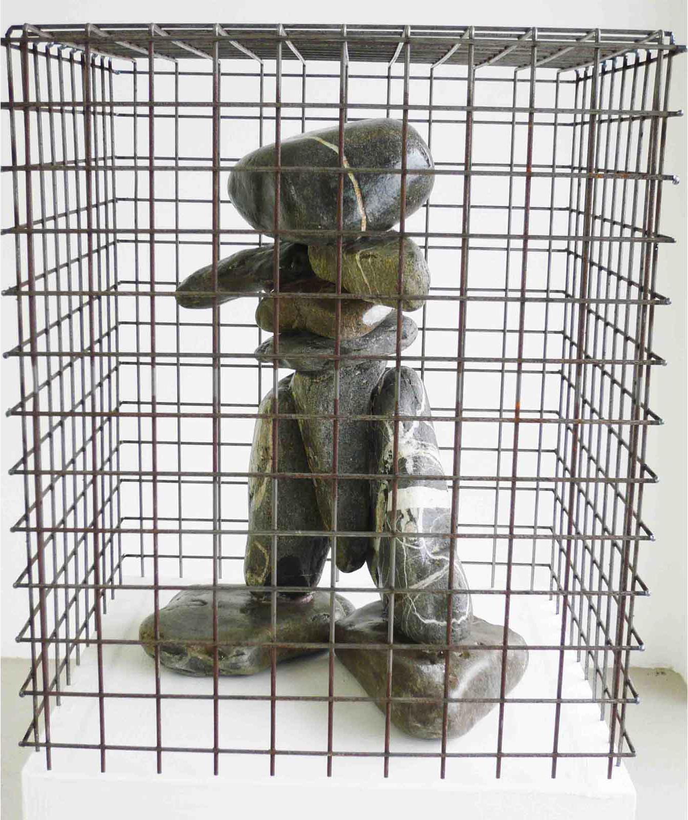 The strange elegance of Zaiser’s monuments is echoed through his drawings and collages. Beautifully rendered pencil sketches of cairns provide a model of authenticity for spatial subversion, their odd linear forms translating geological studies to abstract blueprints. His collages suggest weird ornithic figures that hypnotically oscillate between prehistoric fetish and futuristic design.