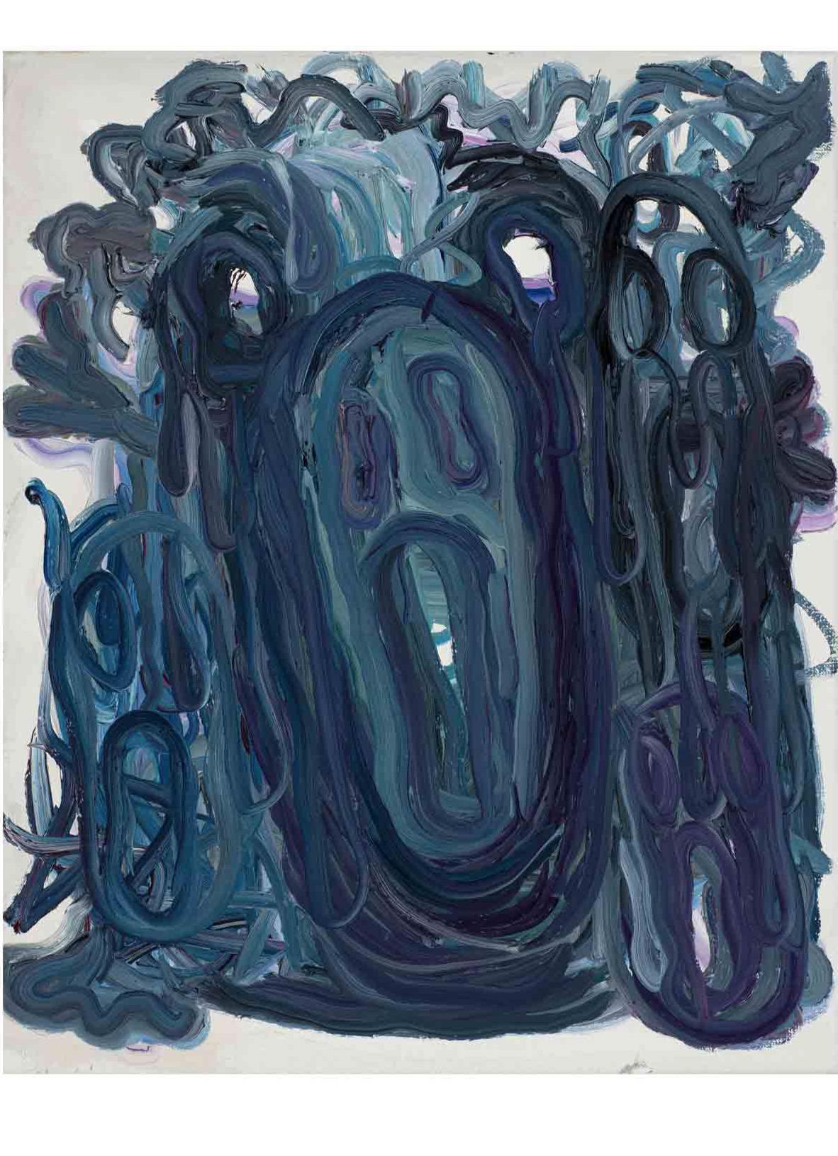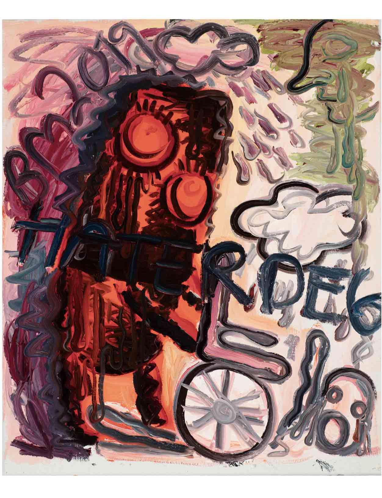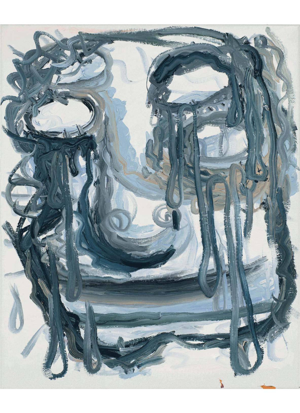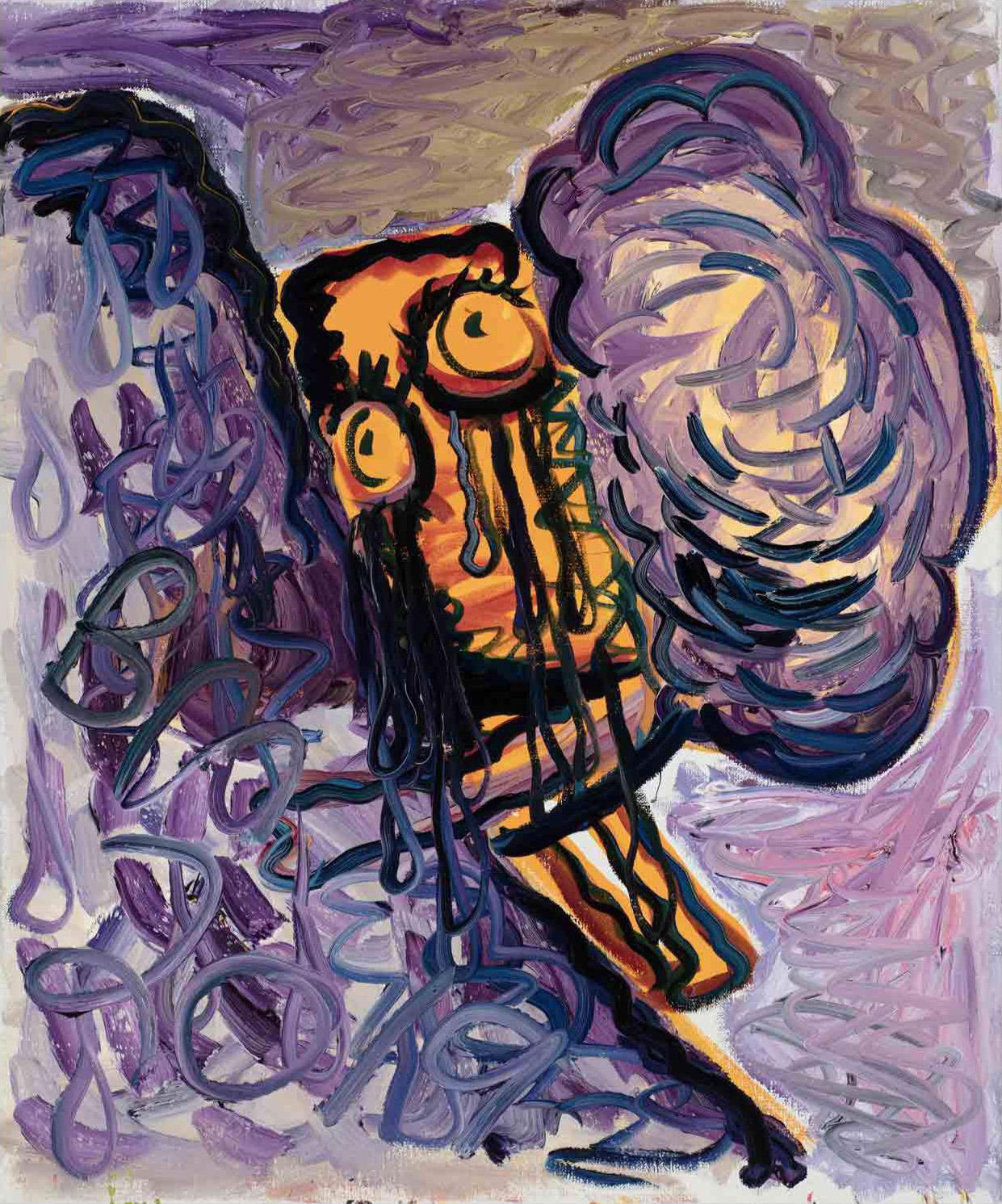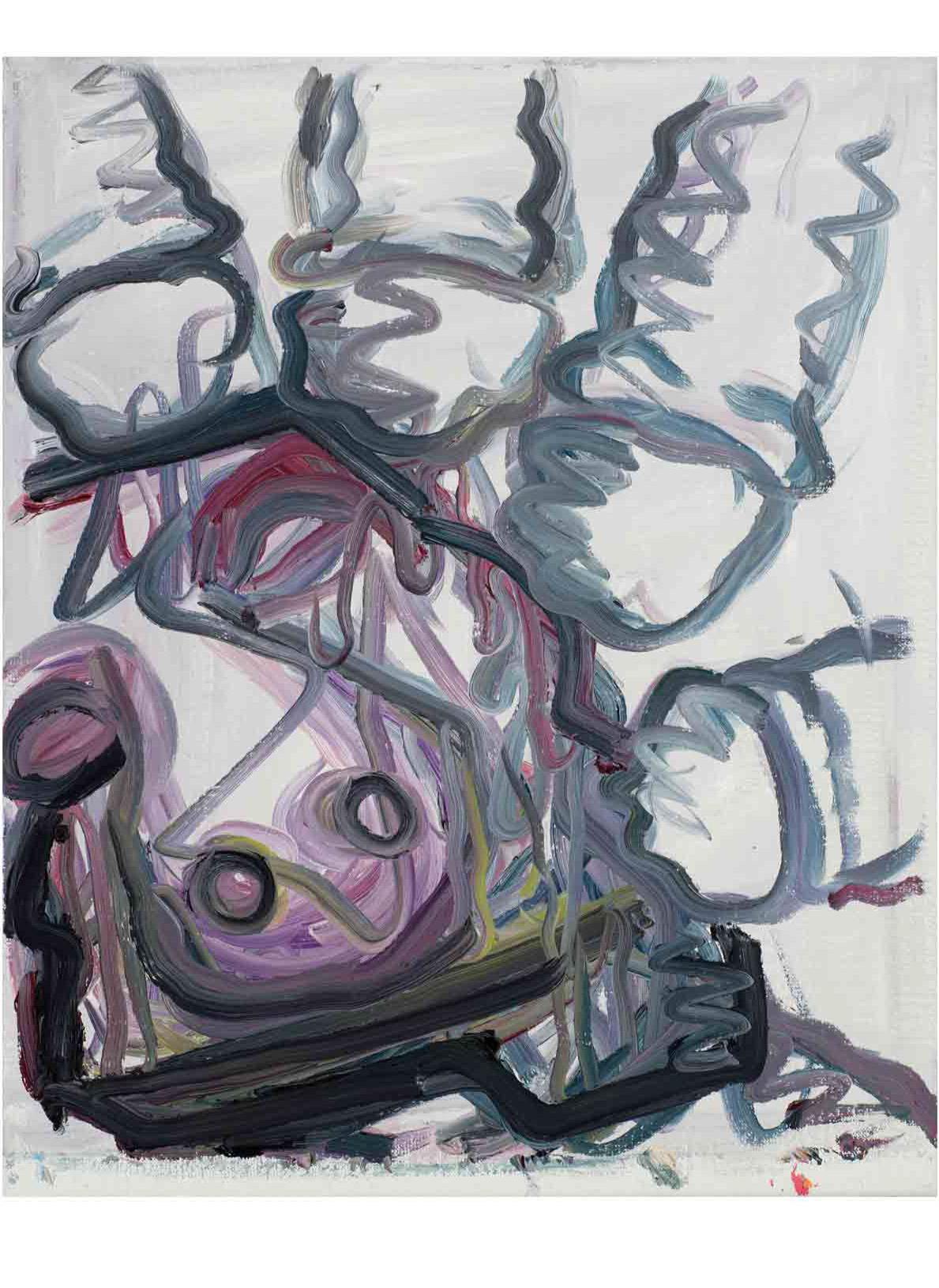 The works are both remnants of the performance of their own production and what the artist describes as the “amoral act” of painting. By this, Melgaard is talking about painting within contemporary art as “fetish objects” in the hyper-capitalist system. Painting as totem for the twenty first century. The pictures are brash and brutal in their sophistication, often focusing on demonic faces which melt into layers of blurred color. There are also bizarre dreamlike scenes that feature otherworldly creatures, part dolphin, part alligator.