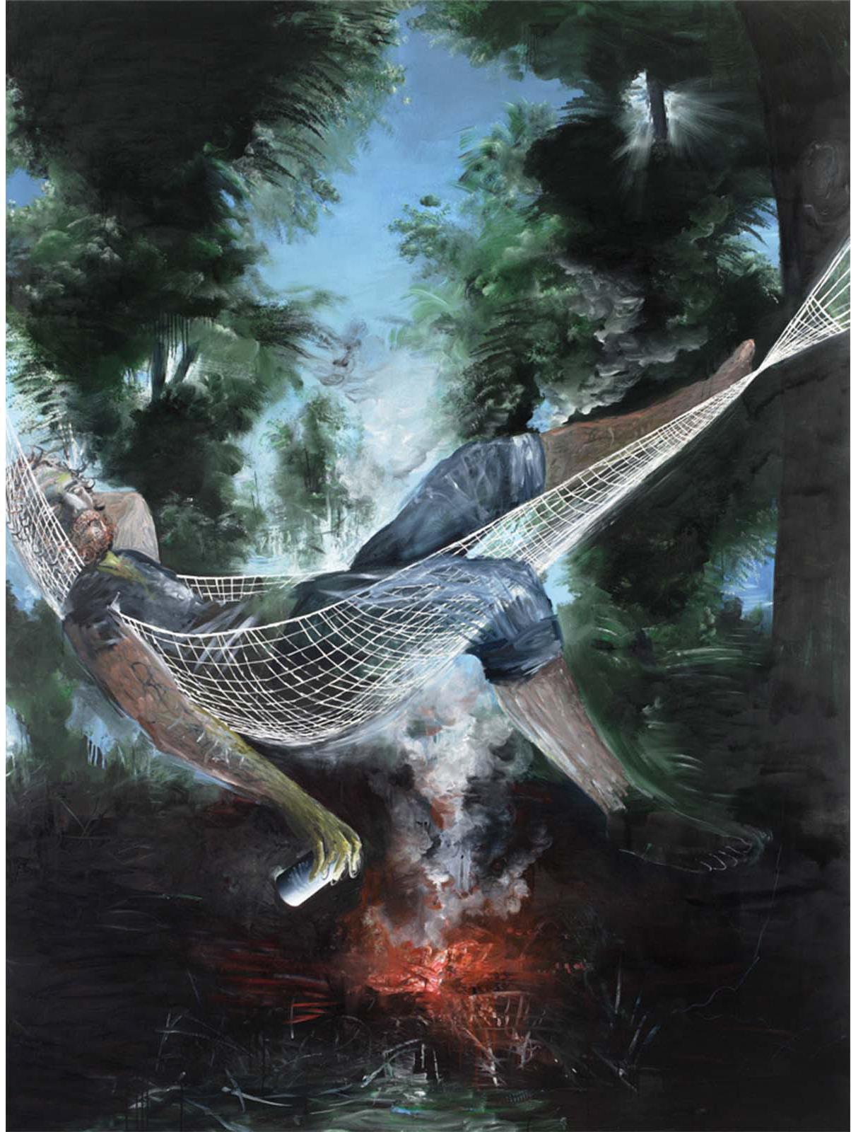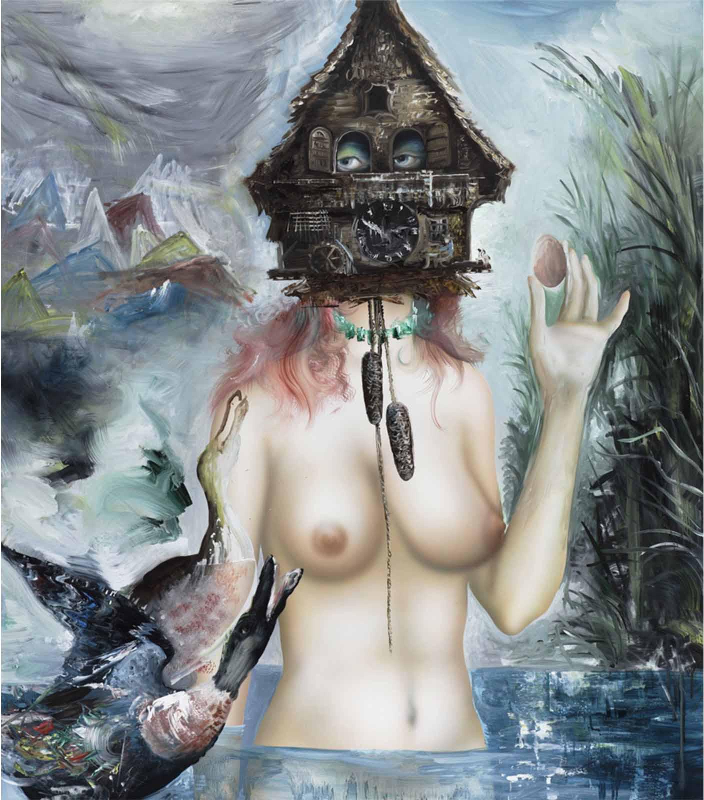 Setting up this transaction of stylistic exchange, Martin’s paintings recode the familiar as bizarre, grotesque, and humorously aberrant. Creating suggestive narratives from their visual and psychological tension, souvenirs are rendered with haunted house ghoulishness, bucolic tableaux loom with gothic fairytale threat, and nonsensical still-lifes refract the absurdity of their composition. Disquietingly elevating the ephemera of pop into the realm of painterly enchantment, Martin blurs the boundaries between high and low culture, creating new possibilities for interpretation and value.