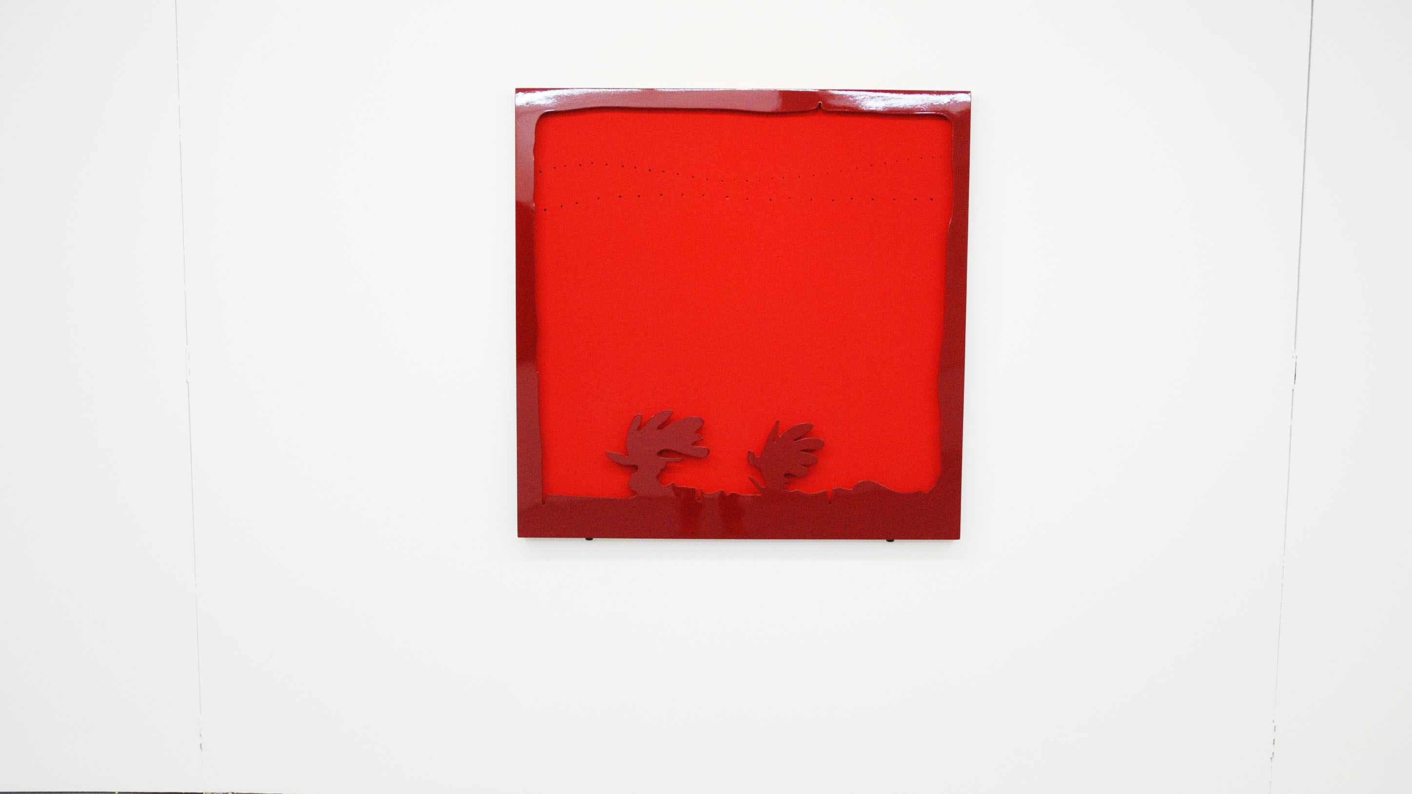 Red acrylic on three superimposed canvases