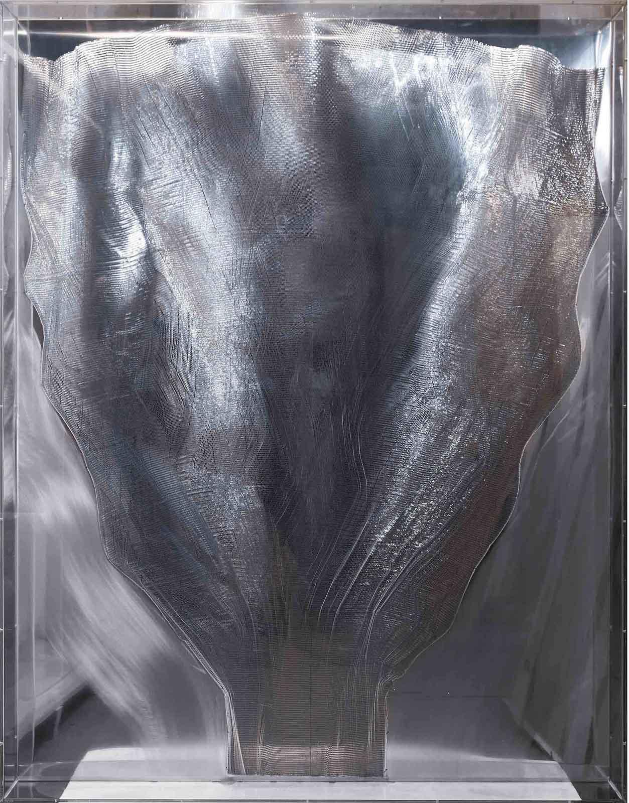 Acrylics, aluminium and cables on canvas