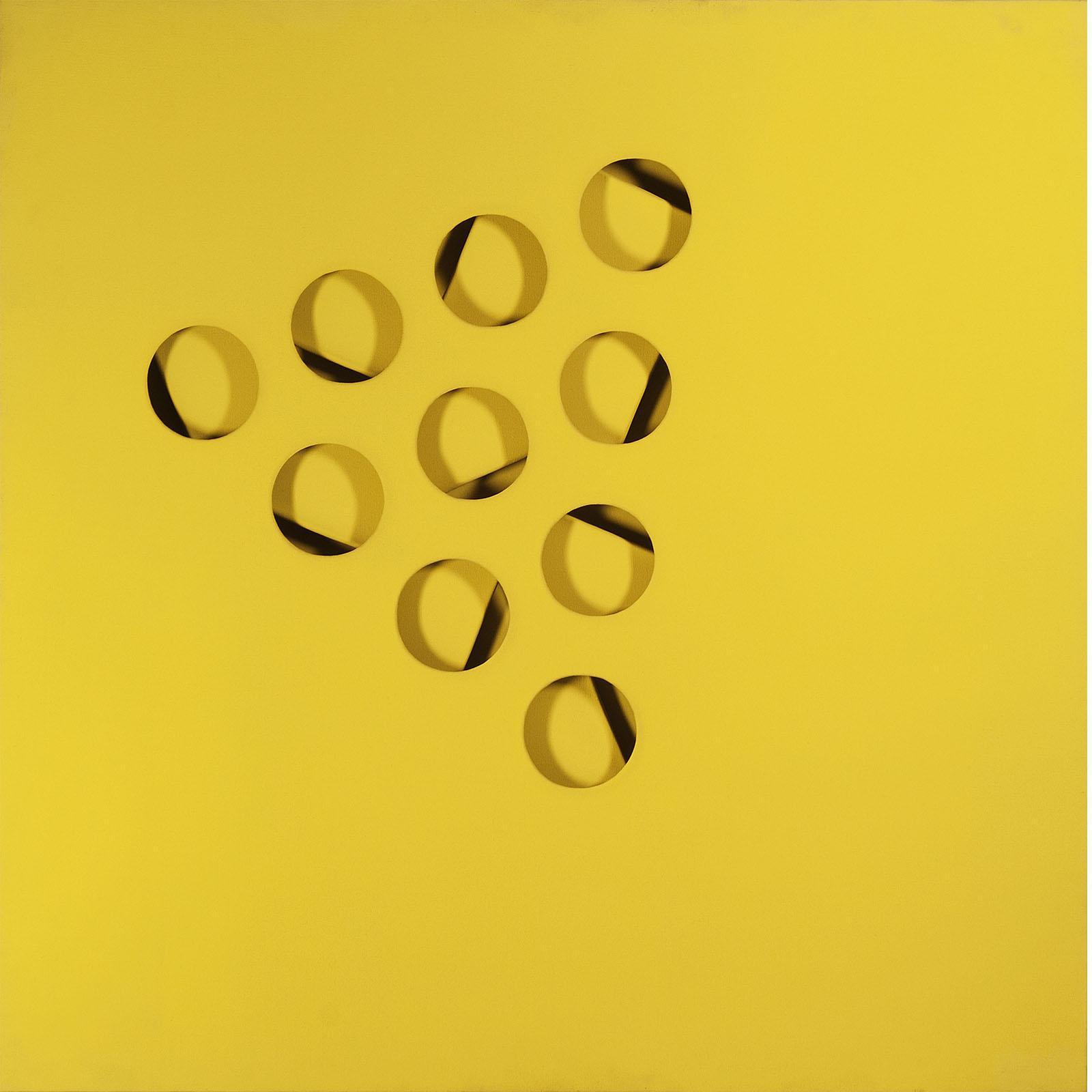 Yellow acrylic on three superimposed canvases