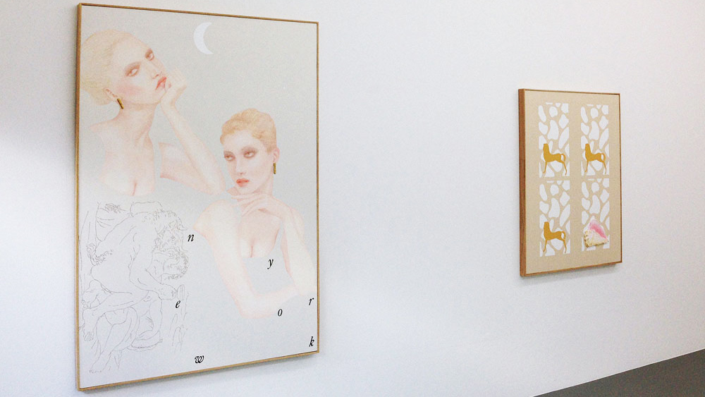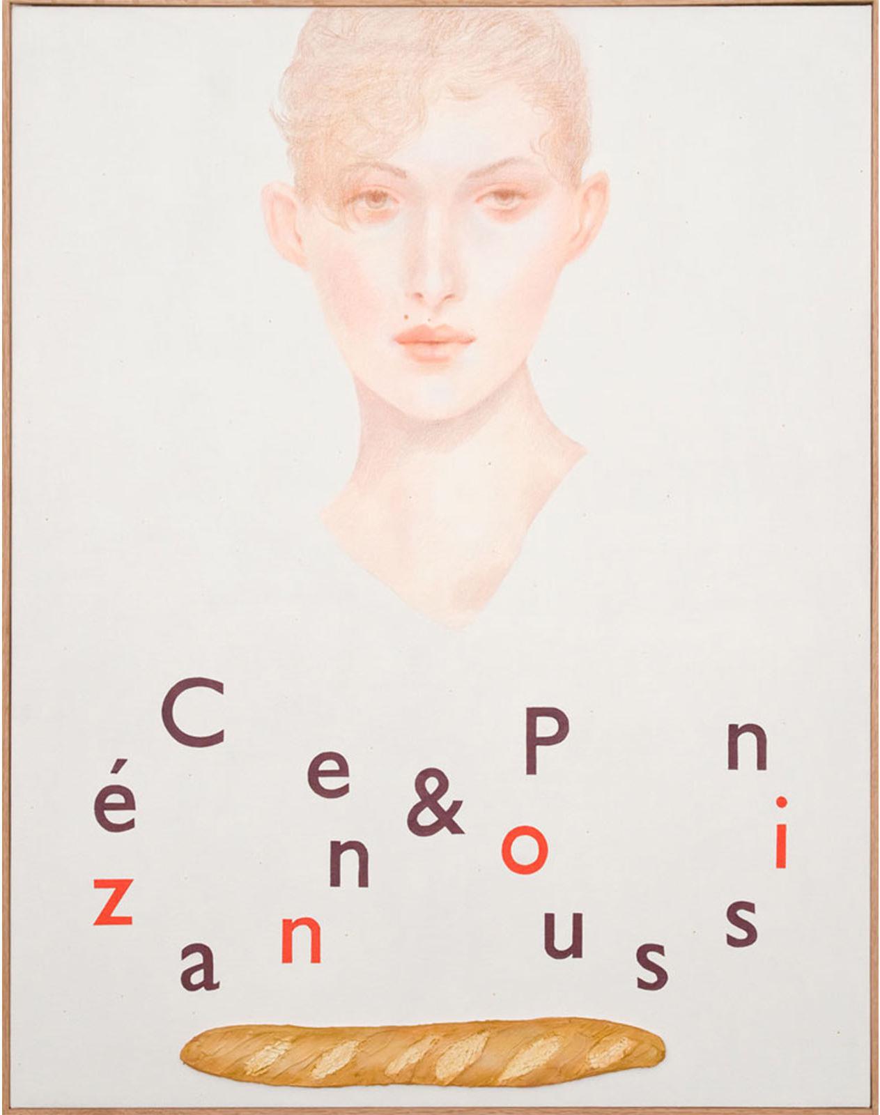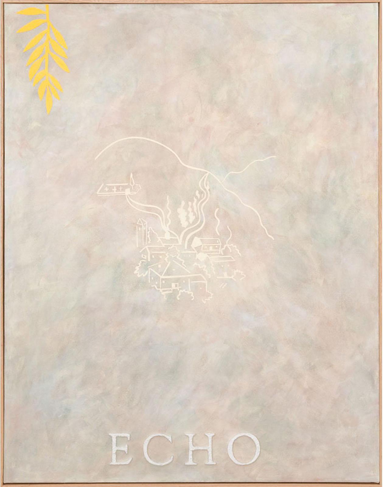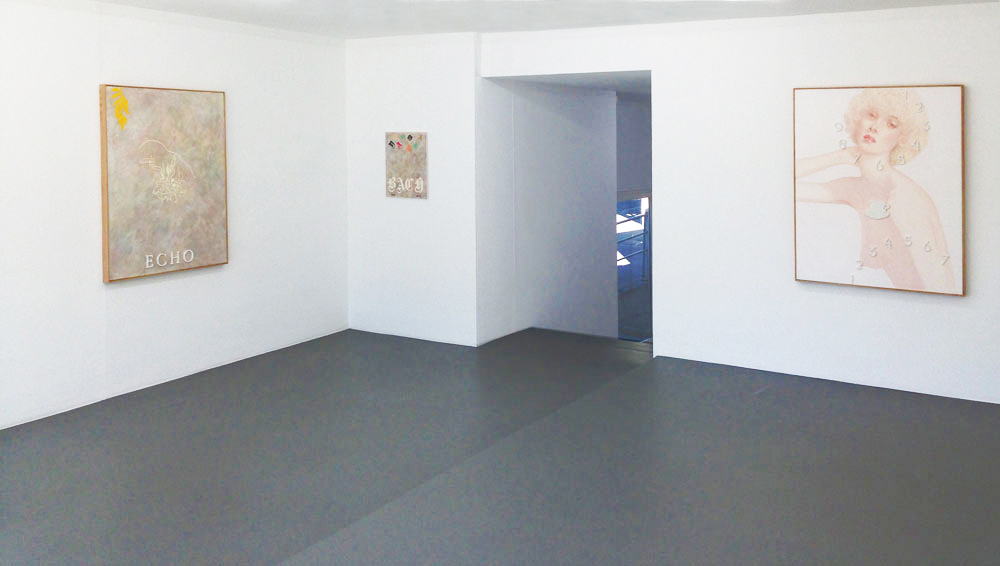 An echo is a reflected sound wave. An avalanche is a mass of snow, ice, and rocks falling rapidly down a mountainside. Reflecting the exhibitions lower Alpine location and its title, Echo Avalanche is Alan Reid’s synthesis of visual form with, musical impulses, filmic dramaturgy, and literary verse. He mellifluously conveys simultaneity of image, concrete text, abstract, and Modernist geometric forms. Reid’s femme fatales are a projection of appearances with the soothing rhythm of Stéphane Mallarmé’s “roll of the dice”, and the divergent registers of high and low diction found in Apollinaire’s Alcools.