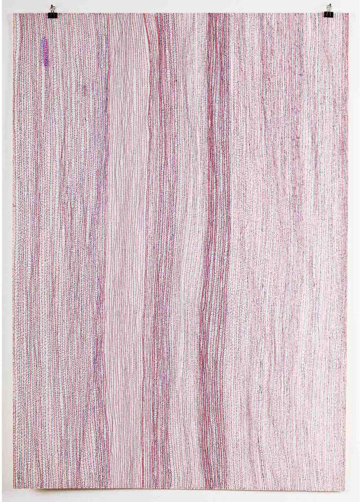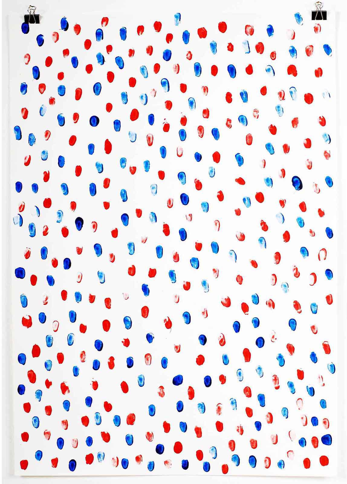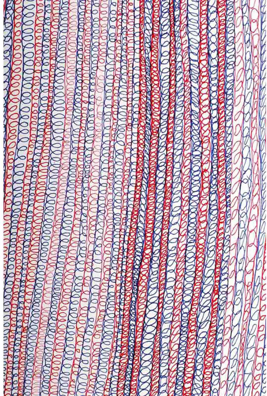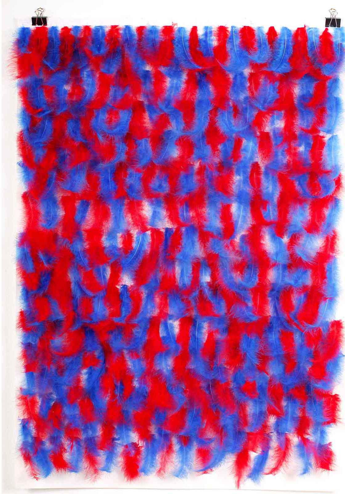 Really just a lot of rockets attached together. I made an Outer Space painting for it as a kind of backdrop. In a way, that piece is what led me to the works in this exhibition, entitled Anaglyphic Drawings and Fan Works. There was a simplicity to the final rocket sculpture that I was at first uncomfortable with: I was worried that it was merely a formal junk sculpture. But on further consideration, I realized that the formalism in the piece had been directed towards an almost illusionistic effect which is a significant departure for me.