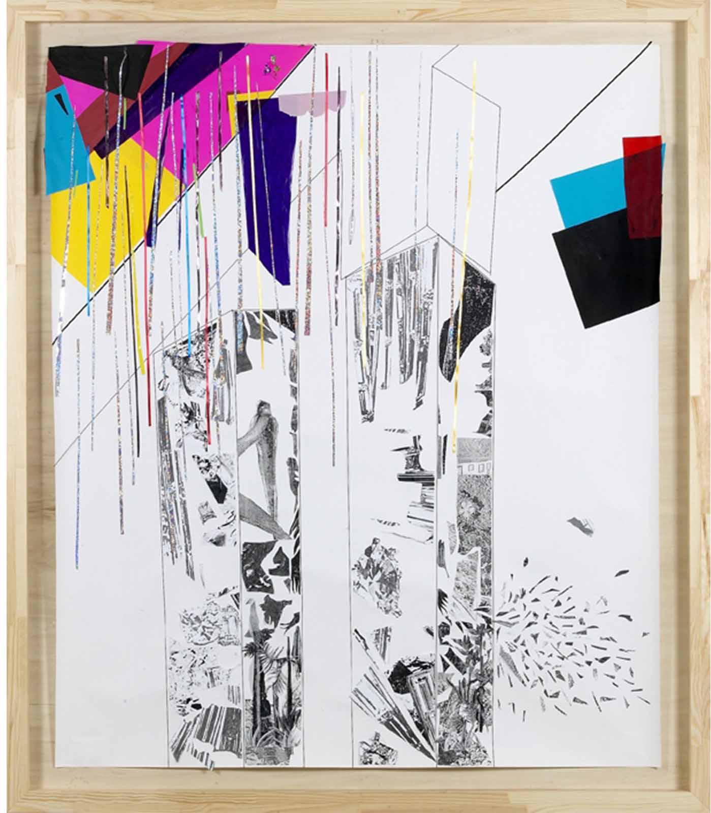 Kirstine Roepstorff’s practice relies upon collage/ assemblage of found media and material to create juxtapositions that question contemporary social, political, and artistic issues.  As noted by writer Cecilie Høgsbro, Roepstorff’s crystalline, refracting, kaleidoscopic images thus make us remember that words, values and concepts constantly tend to merge into their apparent opposites. Where there’s beauty there’s politics, where there’s collectivism there’s individualism and vanity, where there is tension and difference there is also likeness. The border in between oppositions is invisible but a glorious place to be. Roepstorff takes us there.