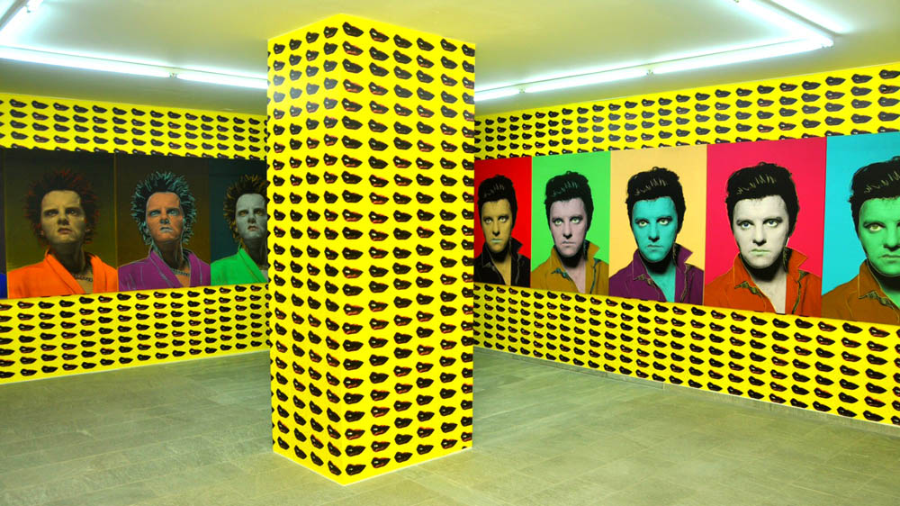 Superimposing his own identity and brand onto famous celebrities and associated art legends, Gavin Turk’s self portraits play a game of subterfuge with authorship and mythology. Turk’s process of making is intensely performative, his prints replicate in detail both the media and production methods used by Andy Warhol. In works from his Elvis series, Turk humorously declares himself heir to the titles of King of Rock and Pop, striking the pose of Warhol’s Double Elvis. These palimpsest references underpin his self-portrait as Sid Vicious, one icon converging via collective consciousness with another, evolving heroically to Turk’s own image.