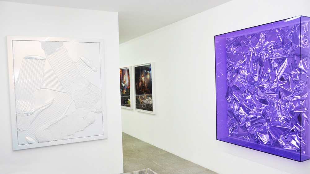 Accompanying these exhibitions will be a selection of paintings, photographs and sculptural works by John Bauer, Gary Hume, Marilyn Minter, Anselm Reyle, and Sterling Ruby: ranging from Bauer’s futuristic canvases with their metallic layers and solarized effects, to Minter’s scandalously seductive photo abstractions, to Hume’s anthropomorphic sculptures entrancing with their sense of movement and elegance. Reyle’s material works are neither sculpture nor painting but rather low-tech assemblages that transform optical trickery into high-design spectacle: Untitled encases crinkled foil in a coloured Plexiglas case creating a microcosm of UV glow expressionism, while his White Earth, an abstract bas relief coated in high-gloss white lacquer, elevates primitive gesture to the clinically sublime.