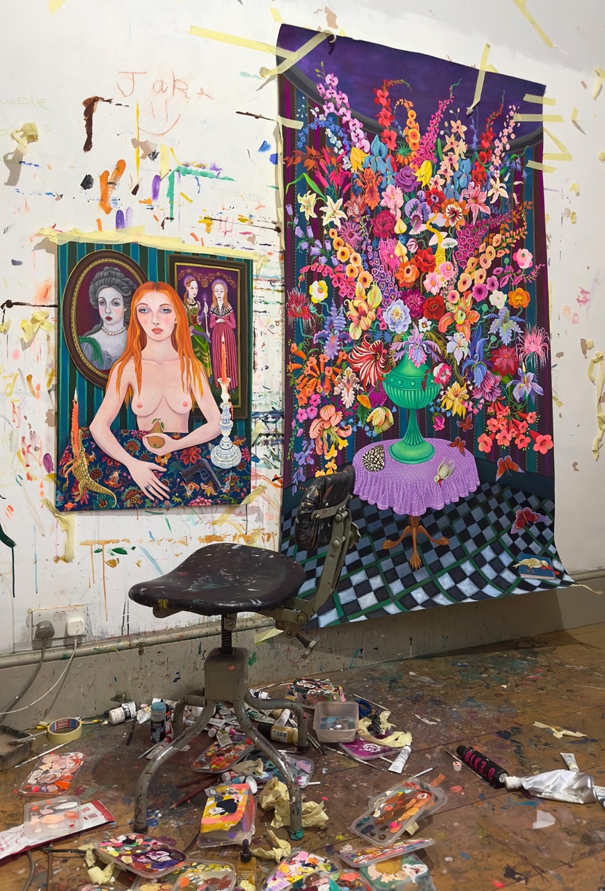 Helen Downie’s portraits and still lifes, created under the pseudonym Unskilled Worker, are rich with layers of emotional depth, vulnerability, and nostalgia. Her works often blend the raw with the refined, exploring themes of beauty, power, and the tension between presence and absence.