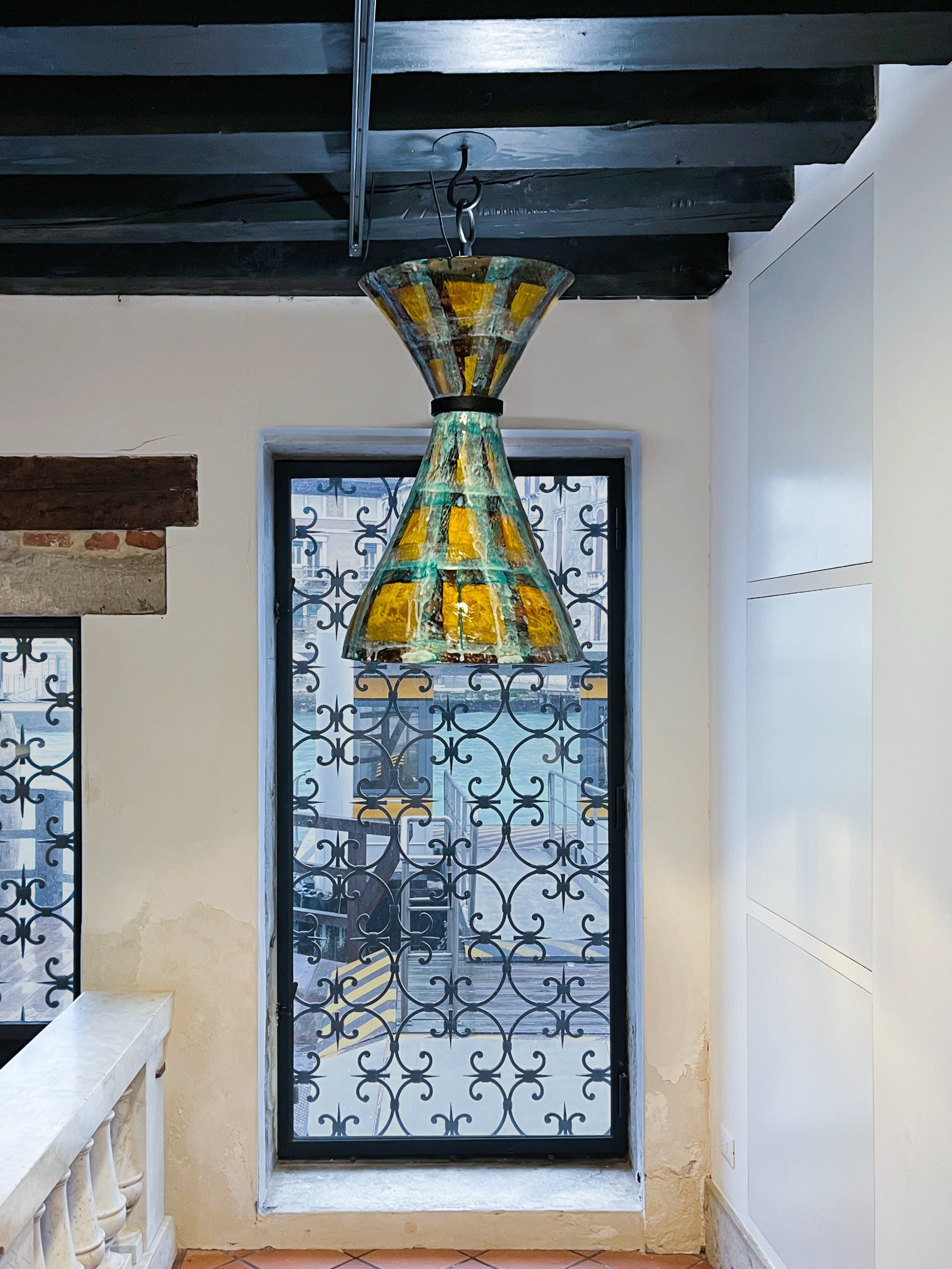 A particularly striking example in the exhibition is one of Gavalet’s lamps, standing at 151 cm tall. Its lilac and purple hues command attention, but the form of the lamp’s stand is equally compelling. Gavalet’s guéridons, too, dissolve the boundary between art and everyday life, each one an invitation to explore the intricate and personal layers of memory, emotion, and time.