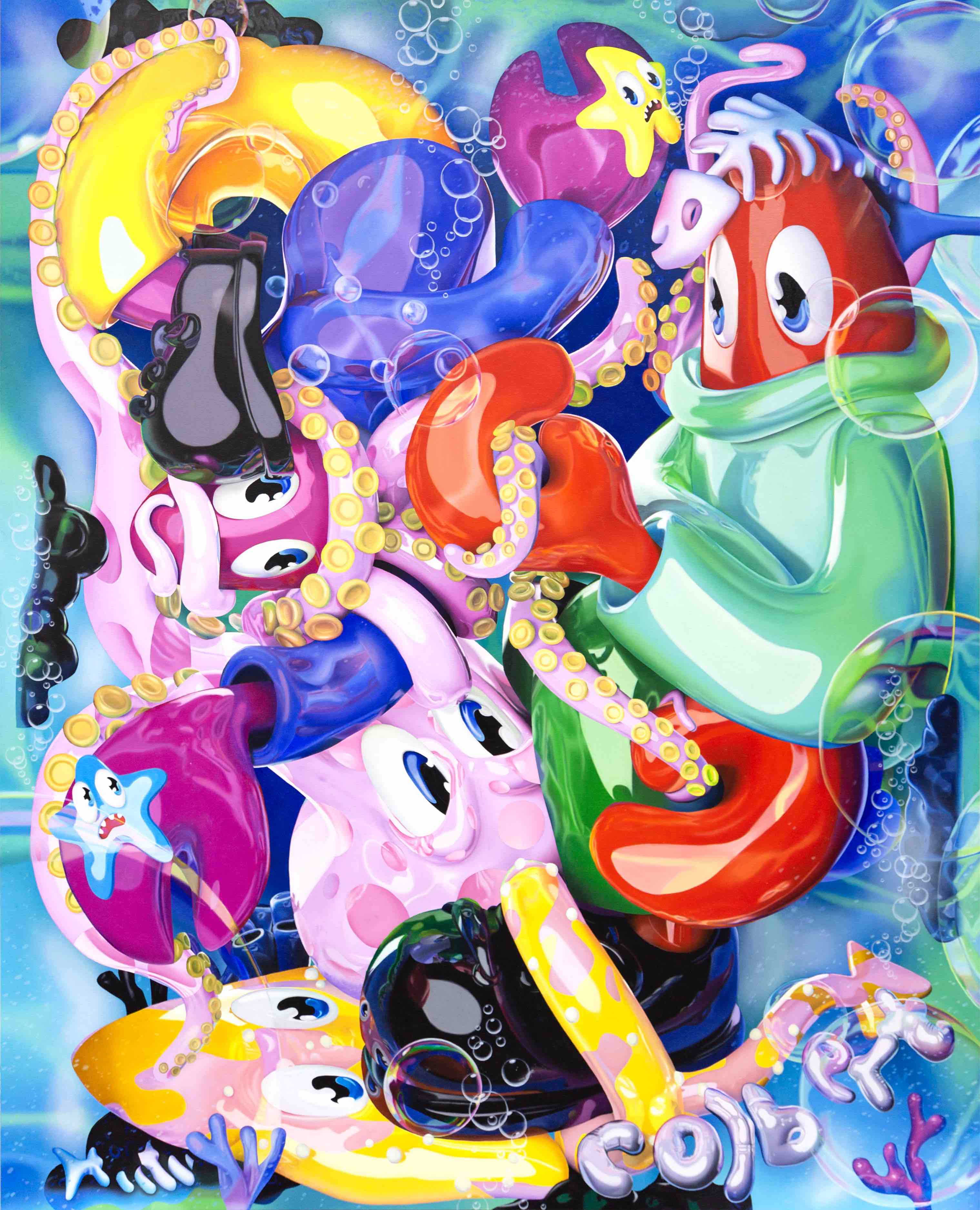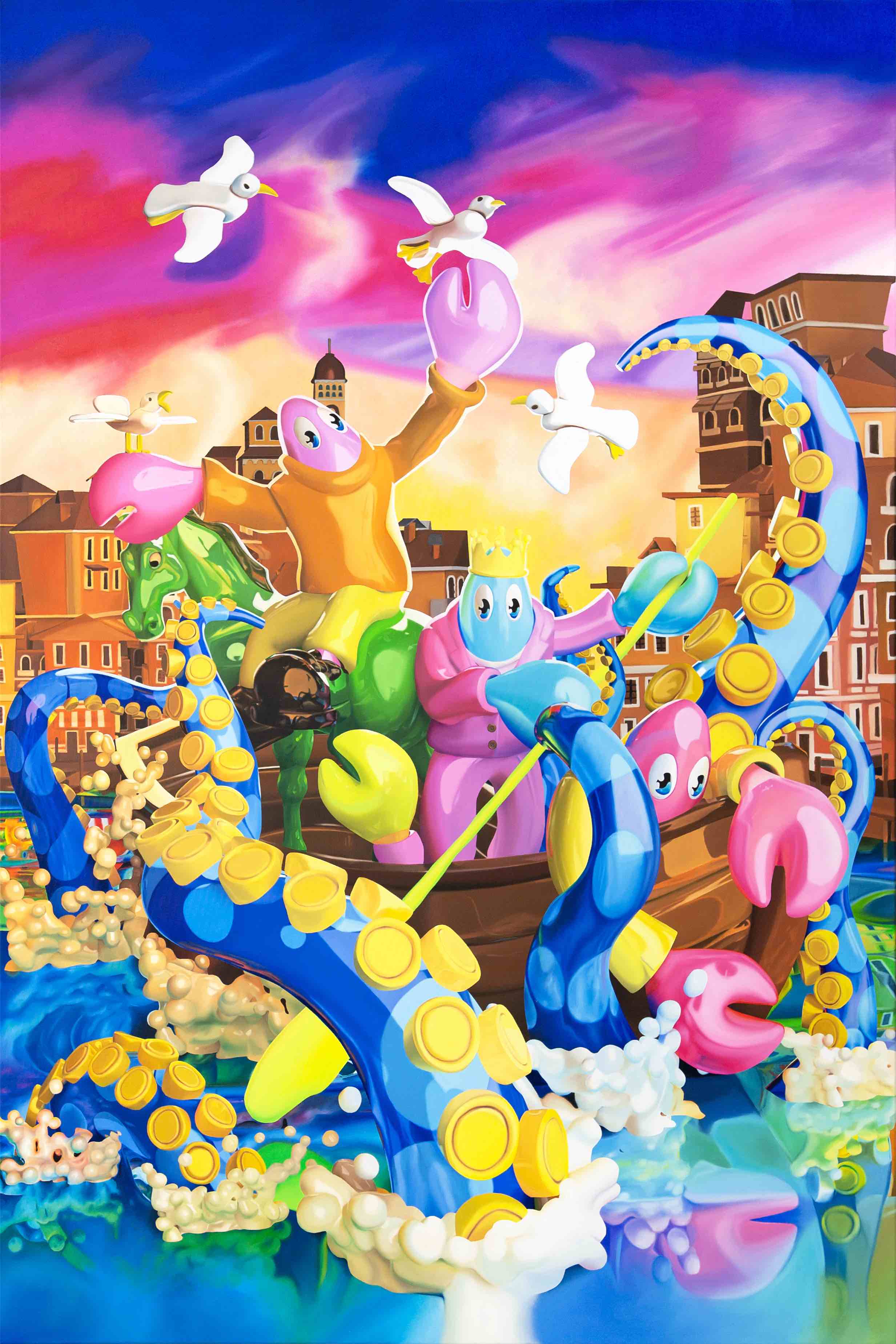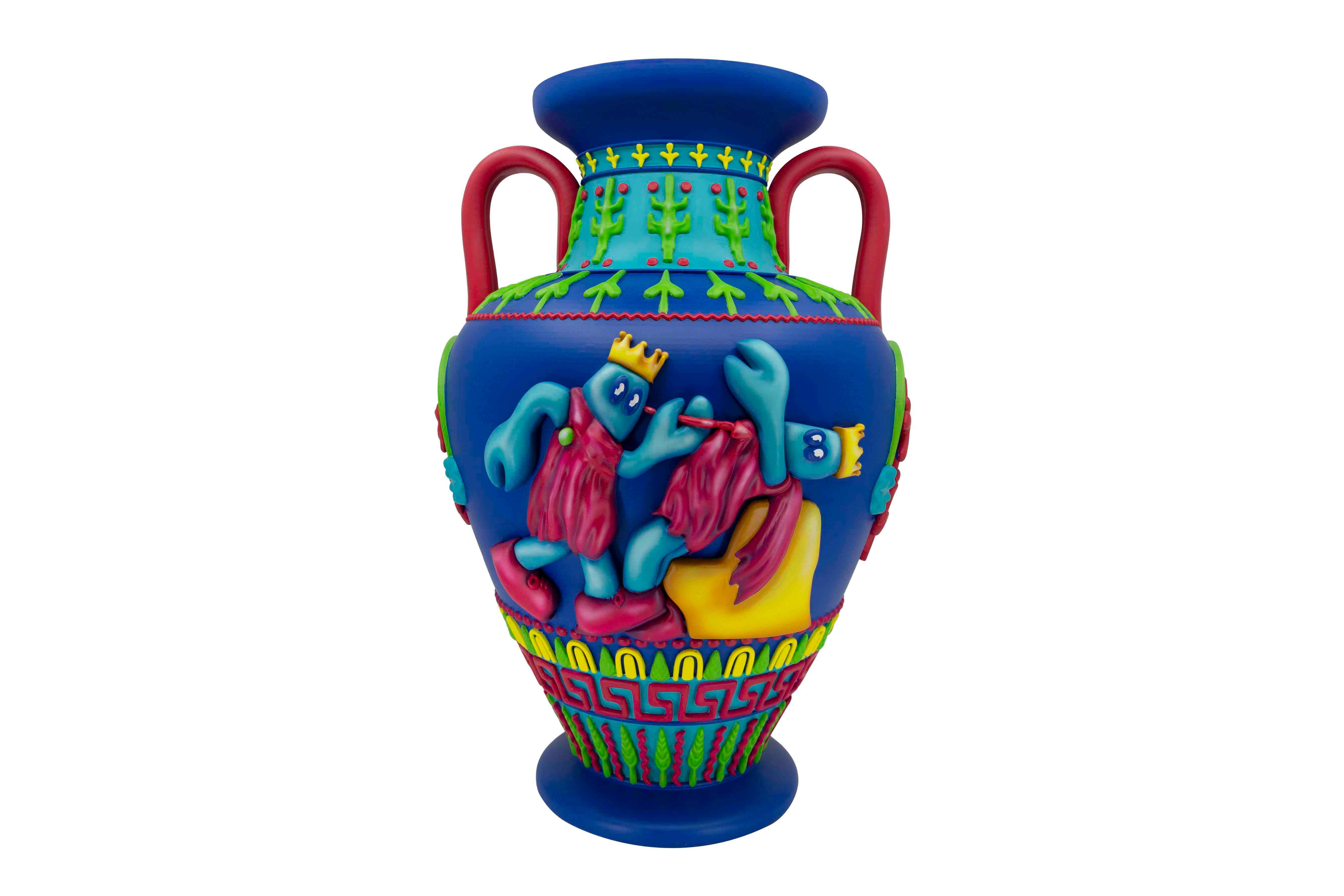 Born in Scotland and living and working in London, Colbert is a contemporary artist working across painting, sculpture, clothing, furniture, and within digital spheres. Often referred to as the “godson of Andy Warhol,” he has created a global following for his cartoon lobster persona and his masterful hyper pop history paintings and sculptures. Graduating with an MA in Philosophy from University of St. Andrews, his work powerfully explores the patterns of contemporary digital culture and its relationship to art history, merging high art themes from old master paintings and art theory with everyday symbols of mass contemporary culture, all narrated through the eyes of his cartoon Lobster alter ego.