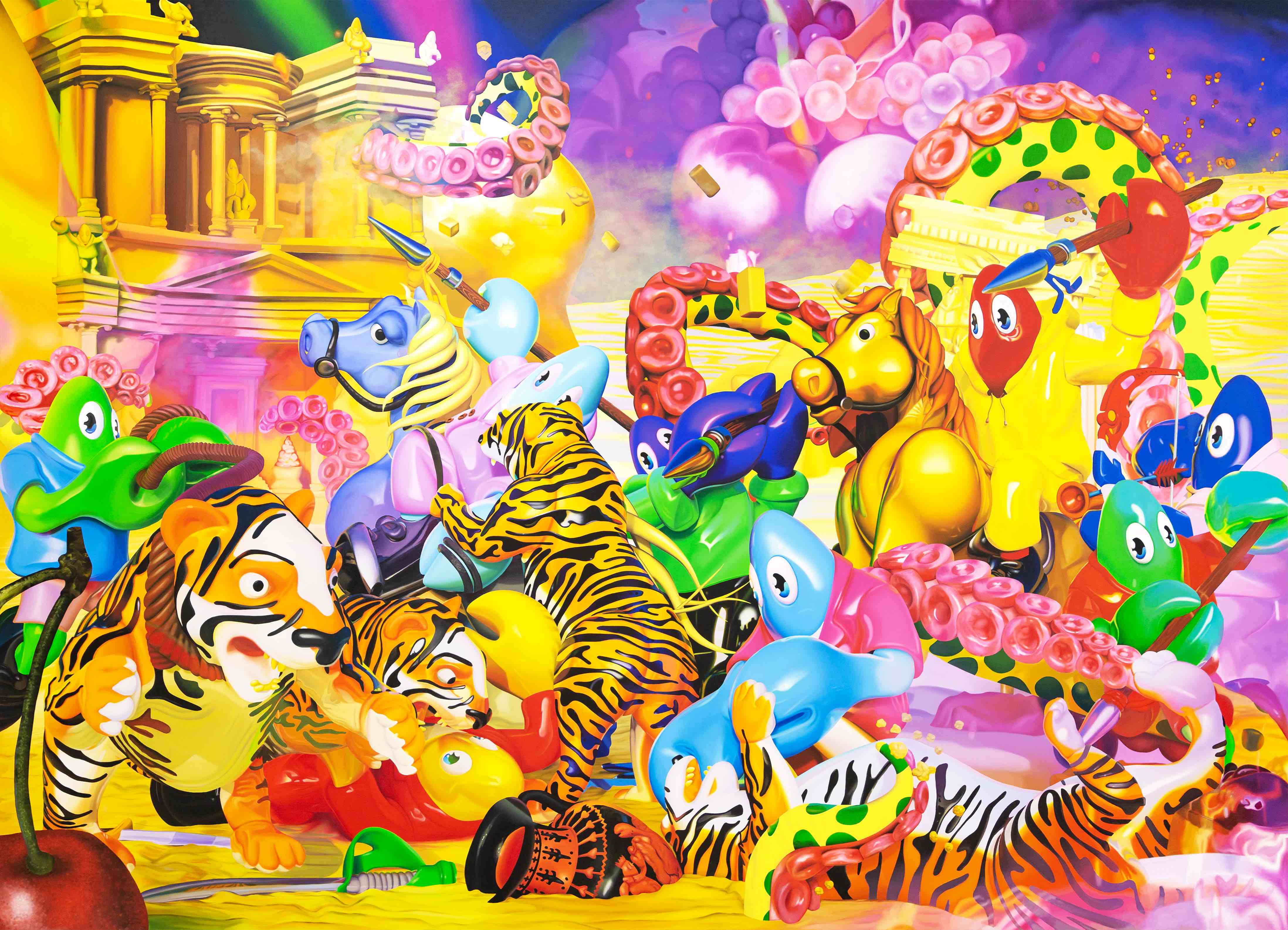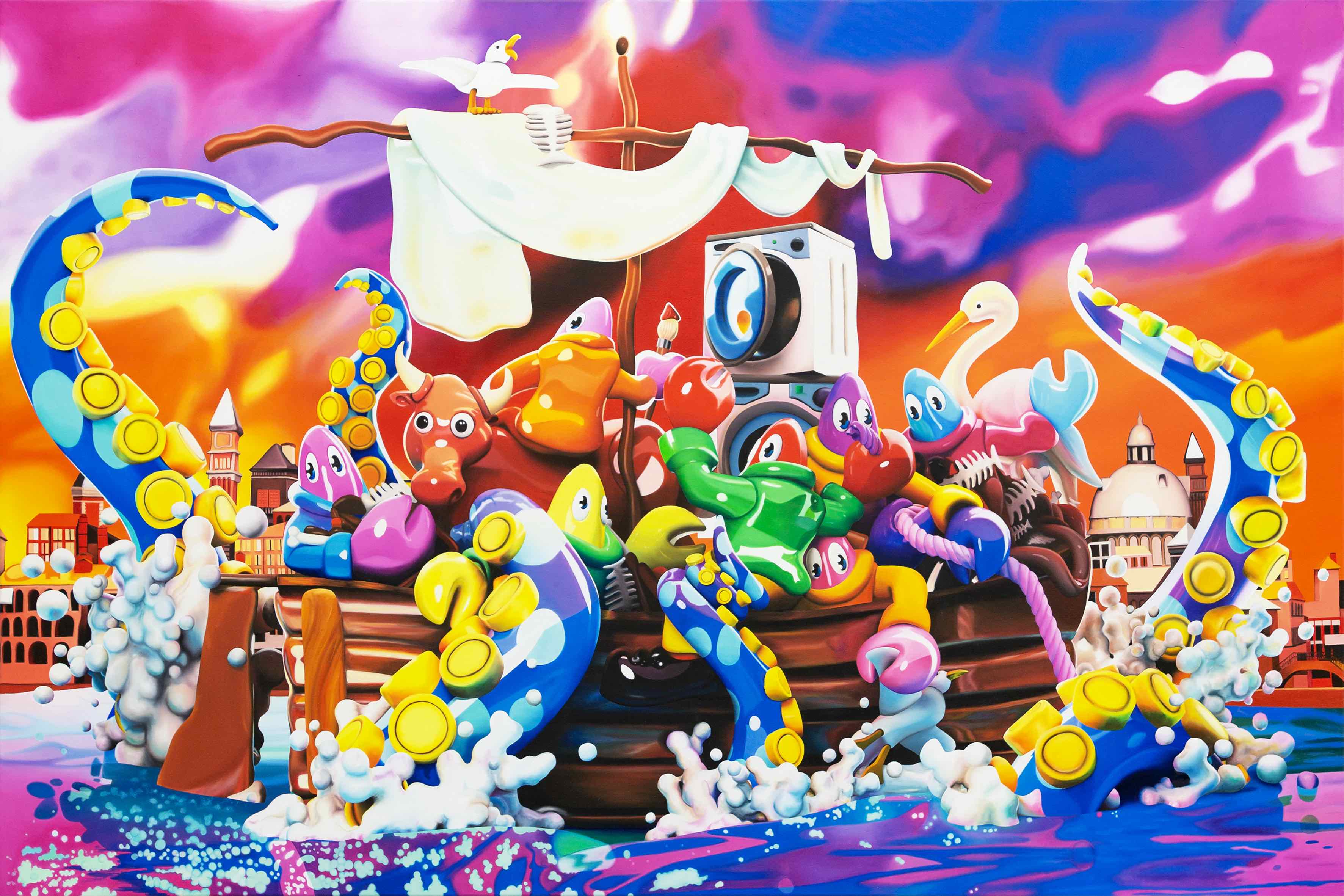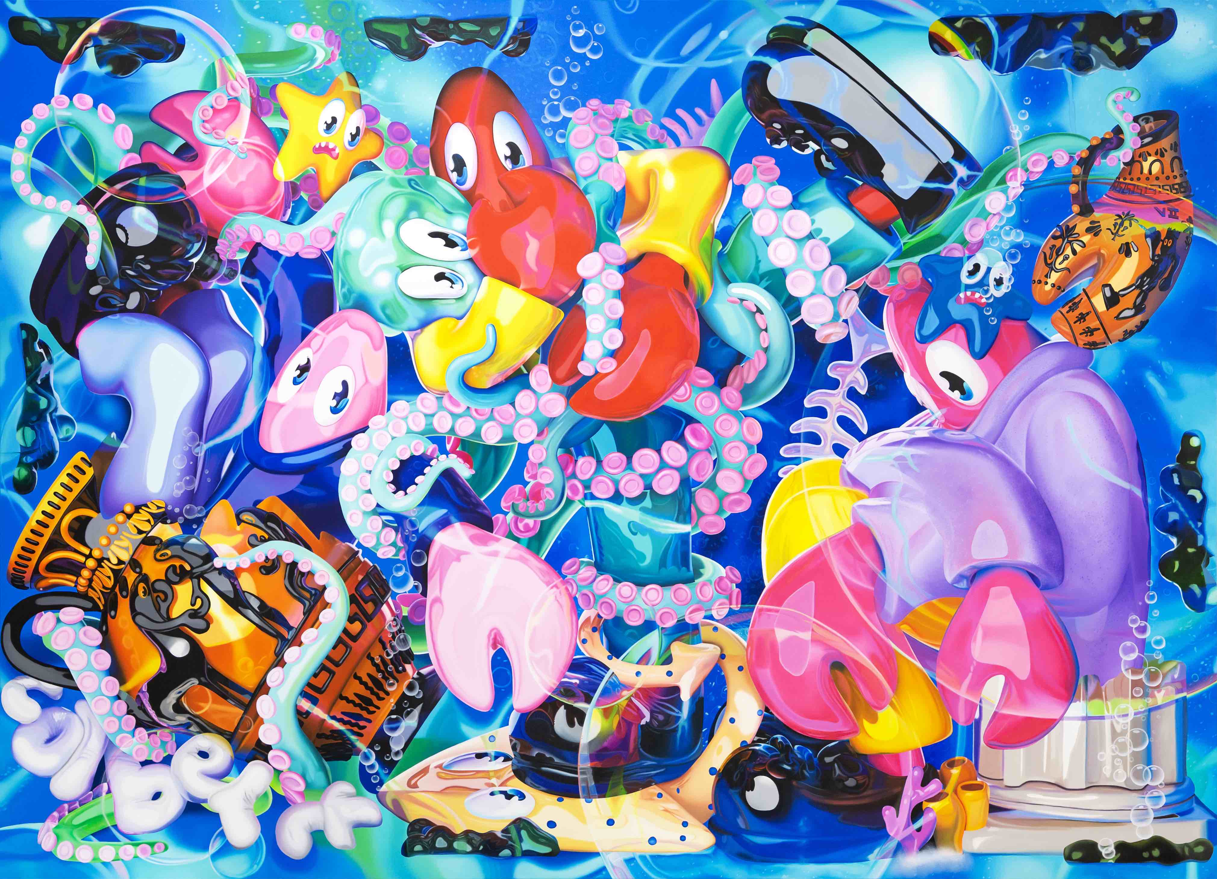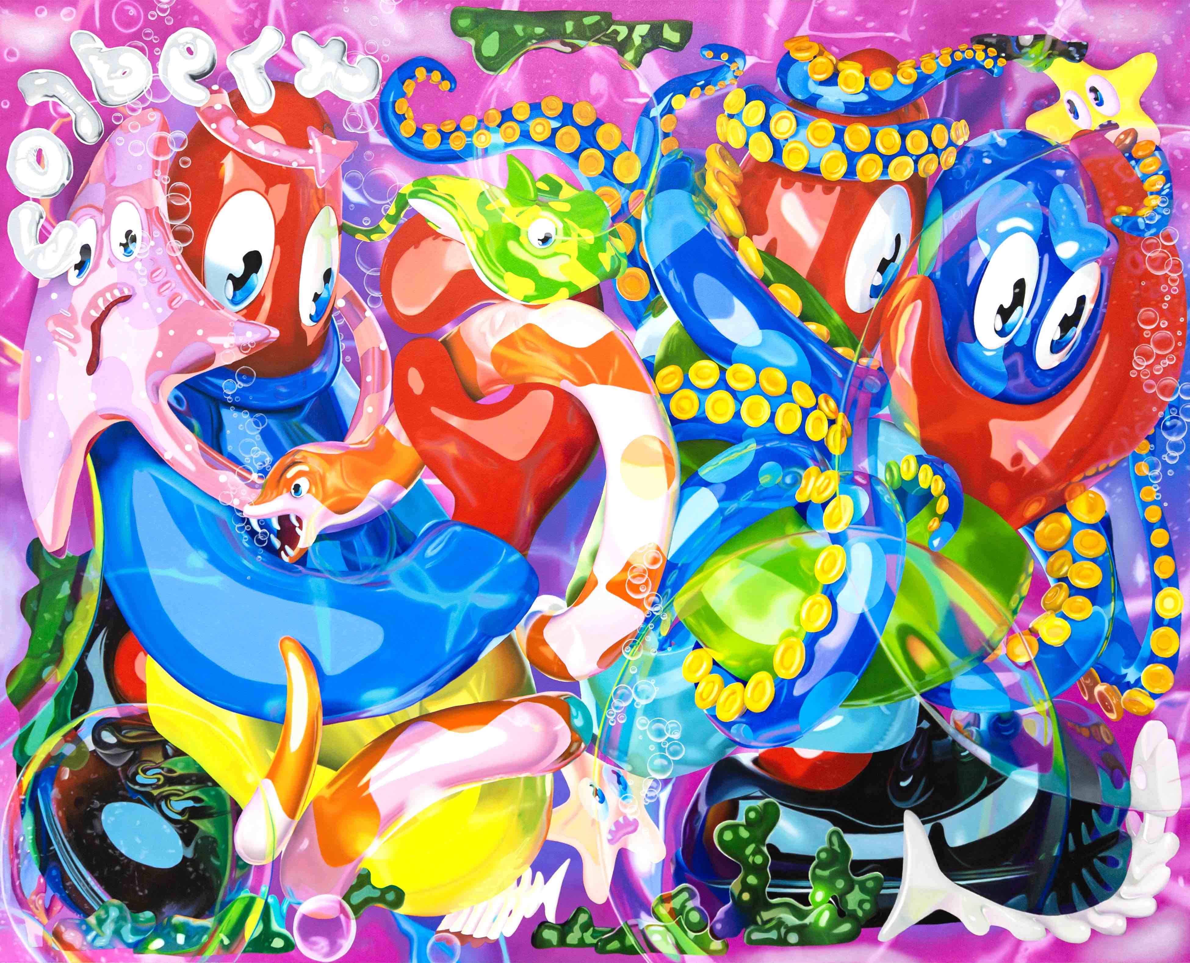 Born in Scotland and living and working in London, Colbert is a contemporary artist working across painting, sculpture, clothing, furniture, and within digital spheres. Often referred to as the “godson of Andy Warhol,” he has created a global following for his cartoon lobster persona and his masterful hyper pop history paintings and sculptures. Graduating with an MA in Philosophy from University of St. Andrews, his work powerfully explores the patterns of contemporary digital culture and its relationship to art history, merging high art themes from old master paintings and art theory with everyday symbols of mass contemporary culture, all narrated through the eyes of his cartoon Lobster alter ego.