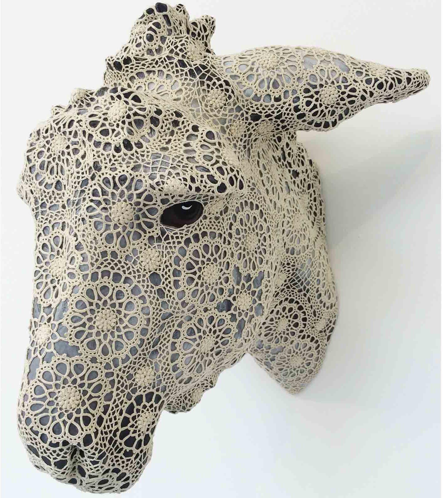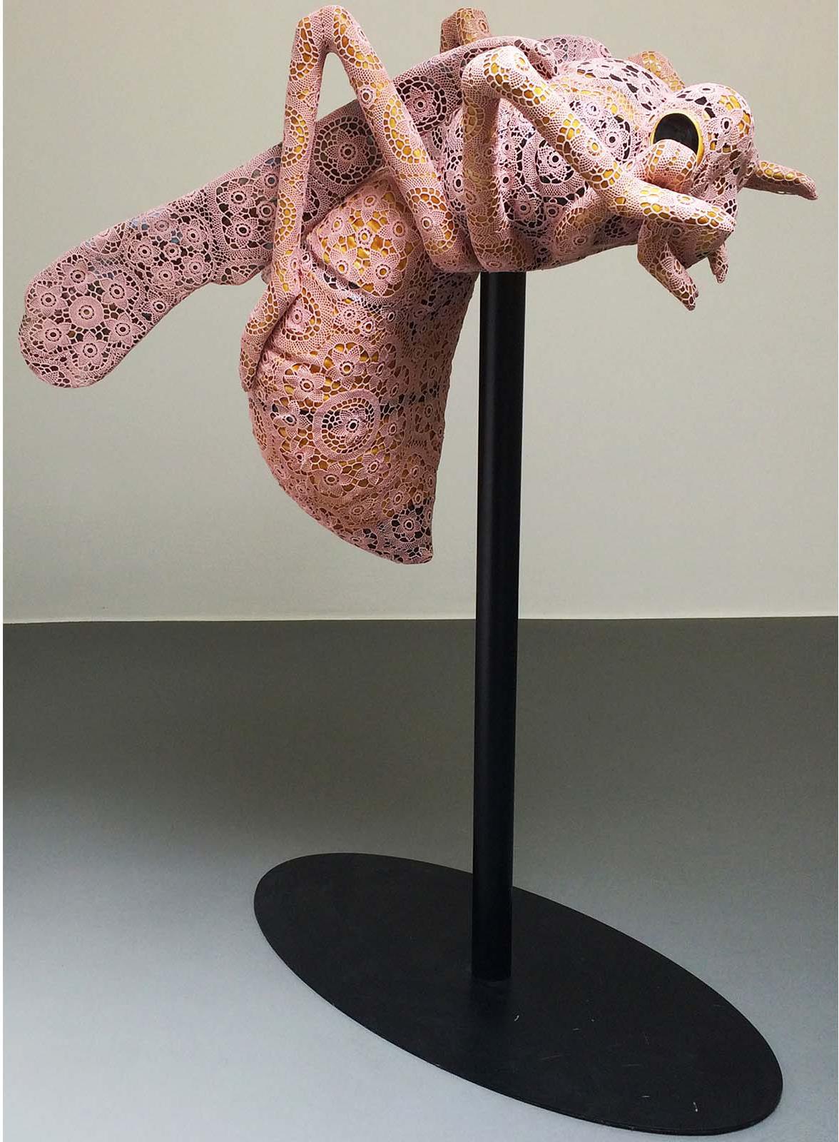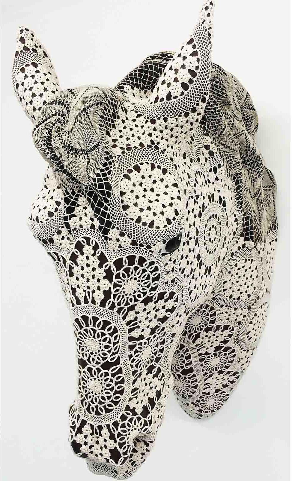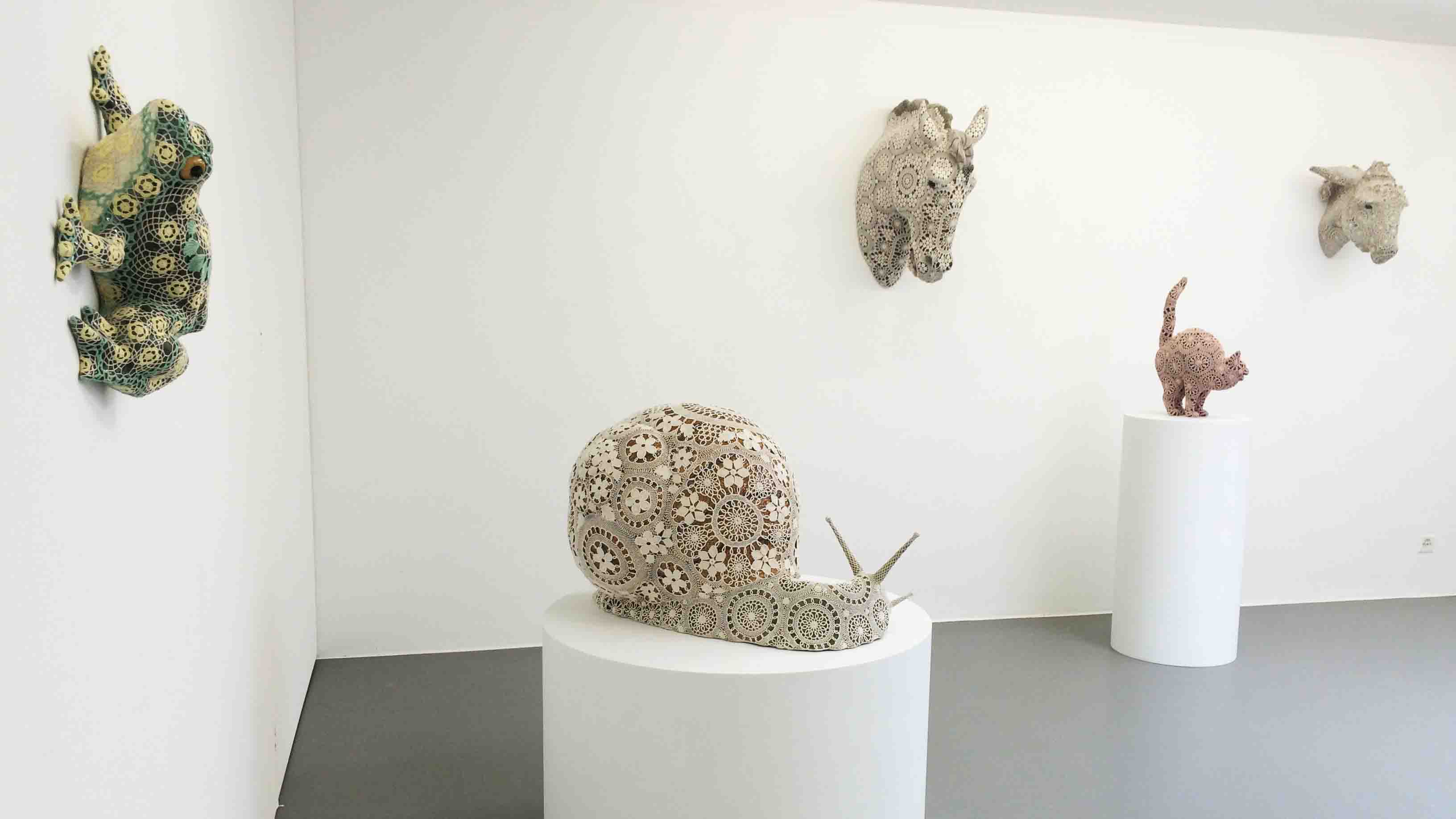 The appropriation by Joana Vasconcelos, from the vast collection of Bordallo Pinheiro ceramics, includes only works that conveys a naturalist representation of an animal with an added component of generating discomfort, suspicion or fear when near Man. The application of crochet in a paradoxal imprisonment/protection of the animals, thus in a domestic environment, opens a vast interpretation awakened by both the beauty and the weirdness that the operation produces.