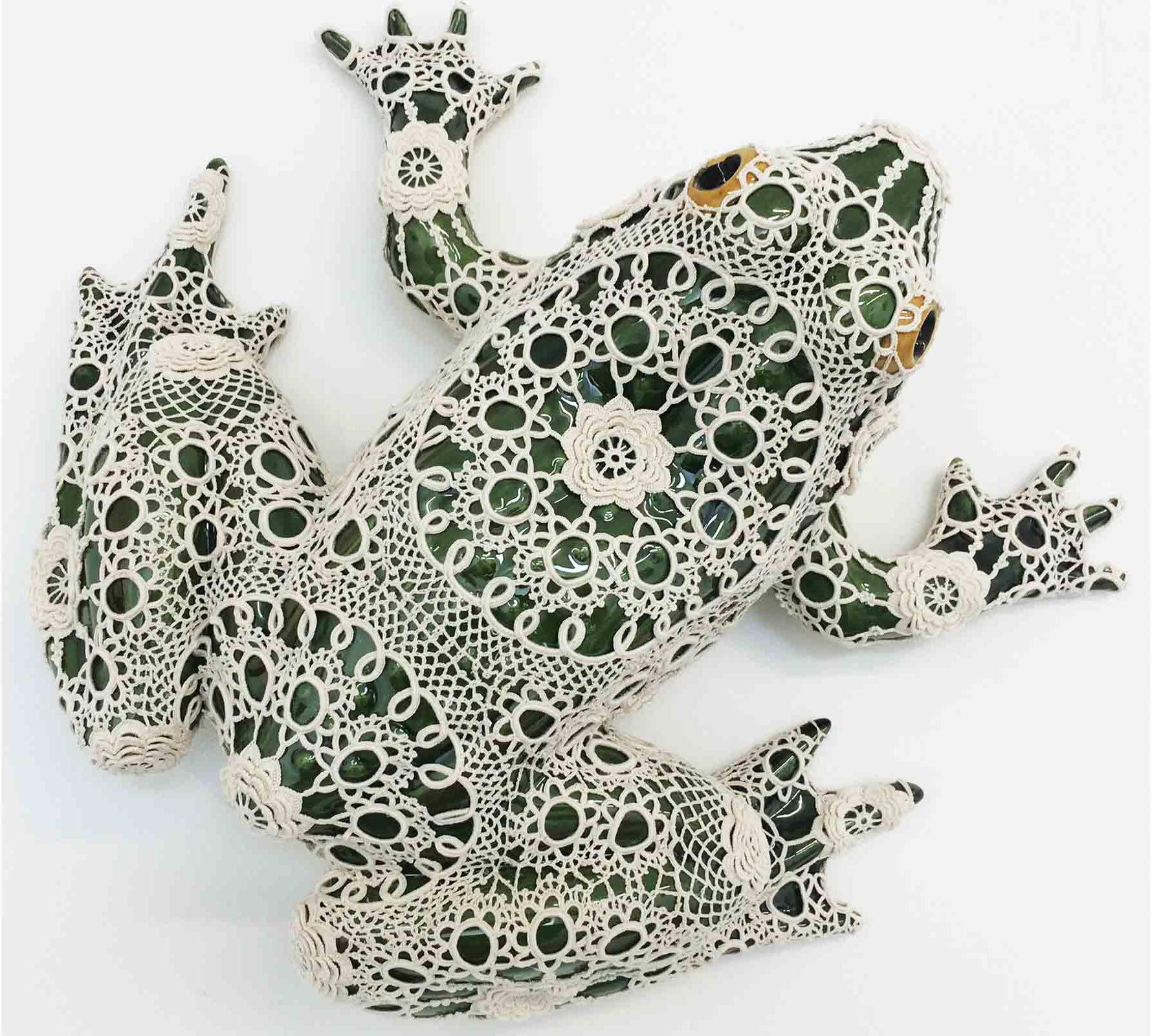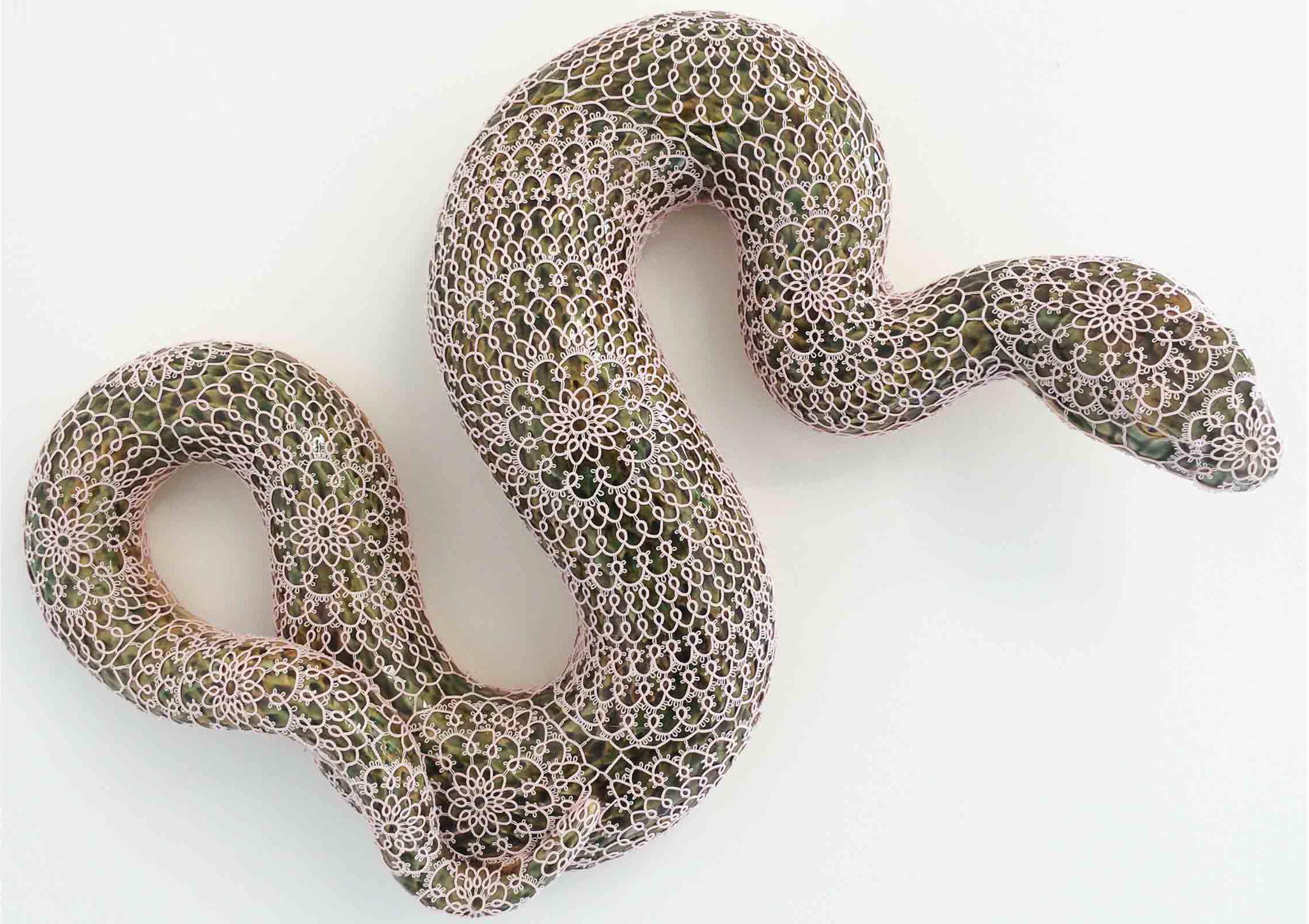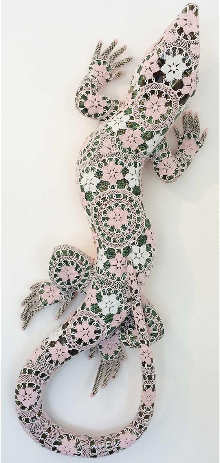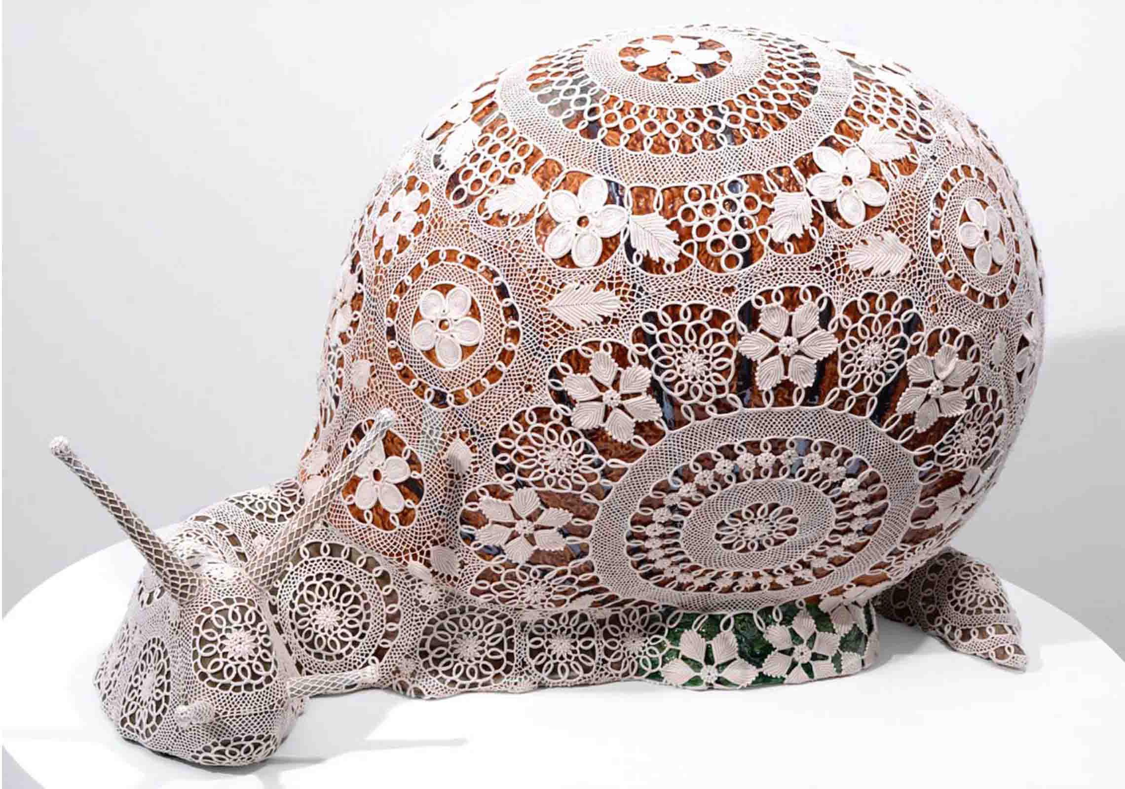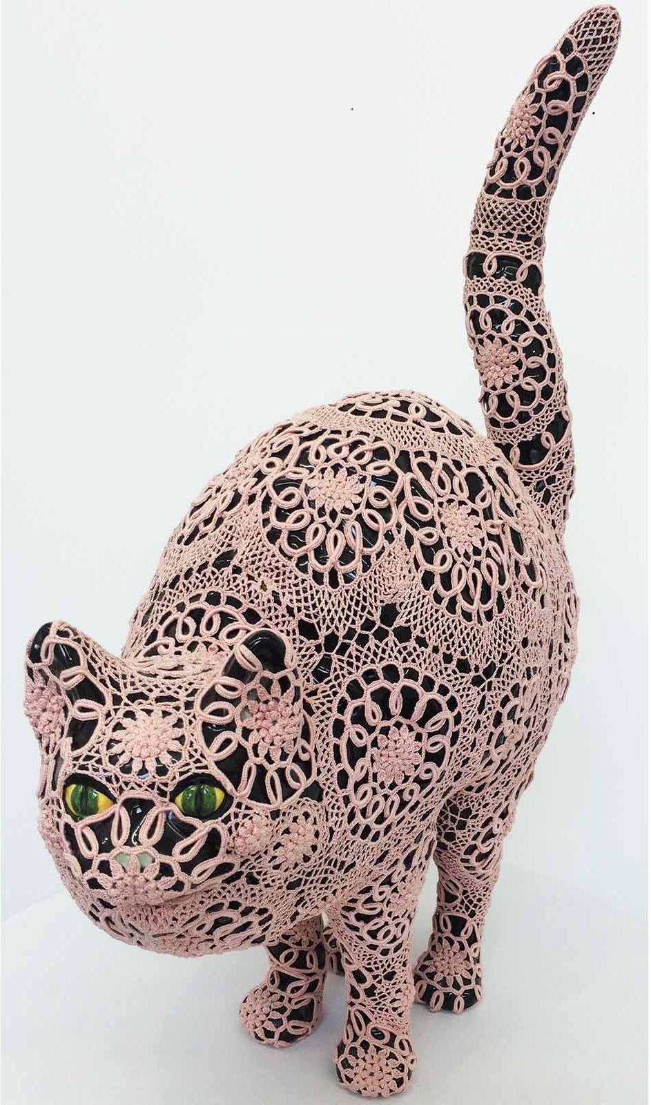 The appropriation by Joana Vasconcelos, from the vast collection of Bordallo Pinheiro ceramics, includes only works that conveys a naturalist representation of an animal with an added component of generating discomfort, suspicion or fear when near Man. The application of crochet in a paradoxal imprisonment/protection of the animals, thus in a domestic environment, opens a vast interpretation awakened by both the beauty and the weirdness that the operation produces.