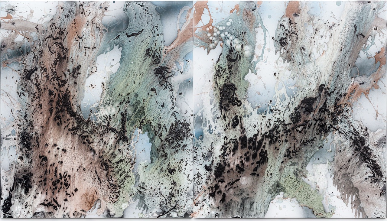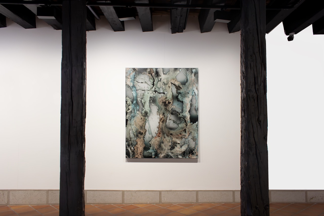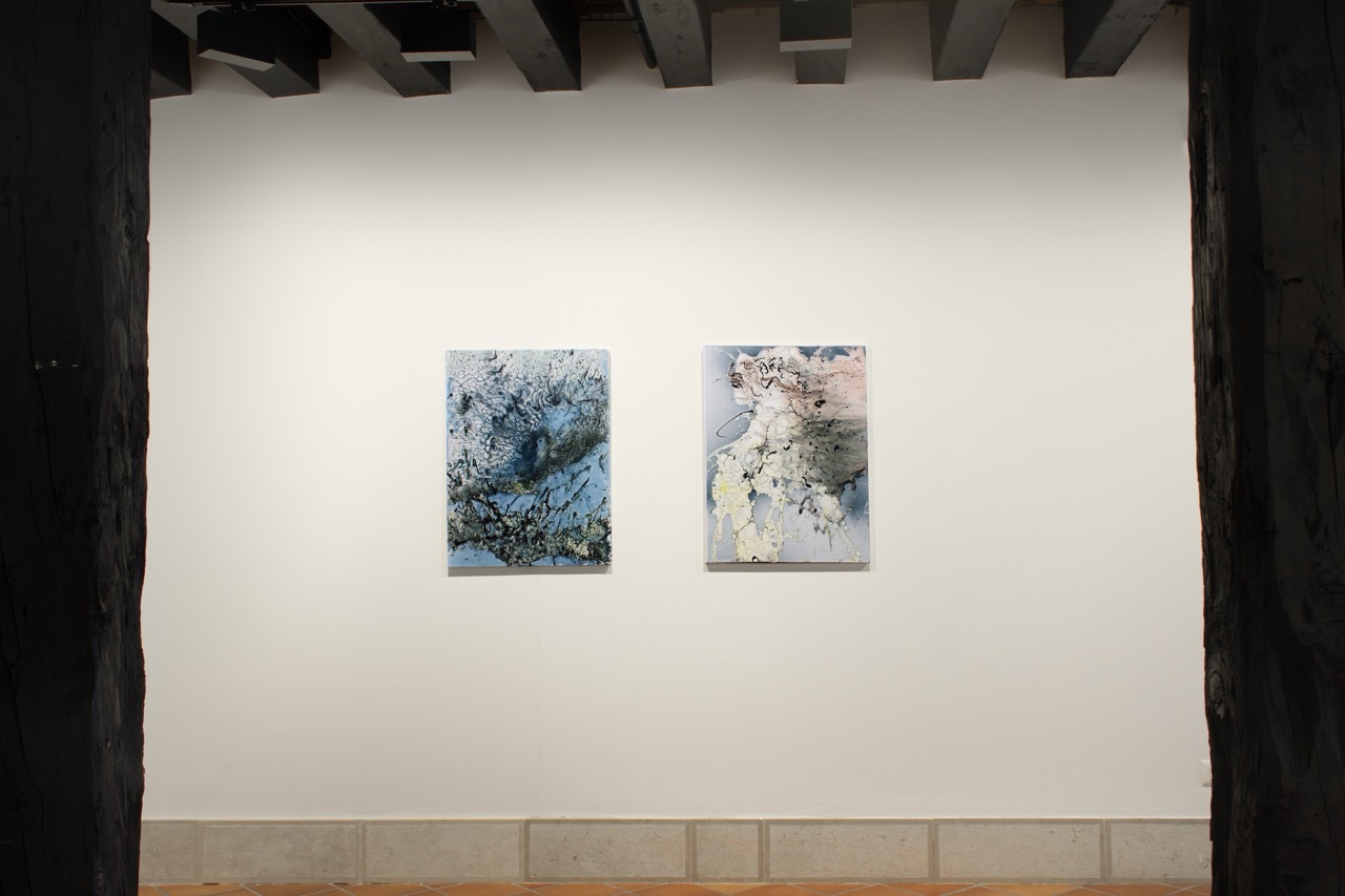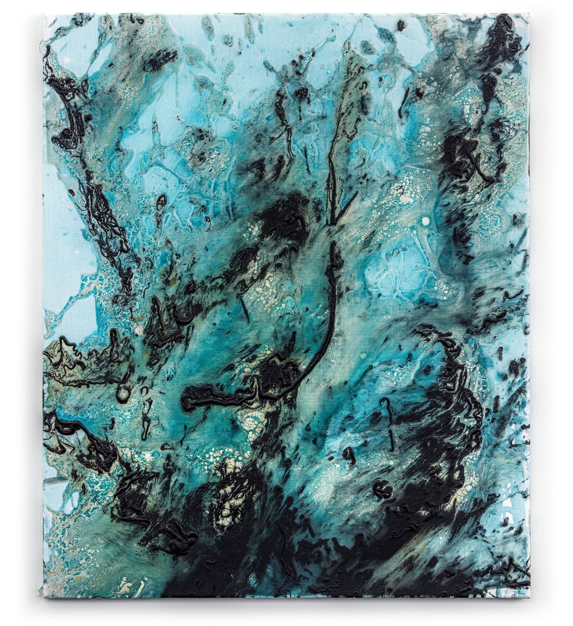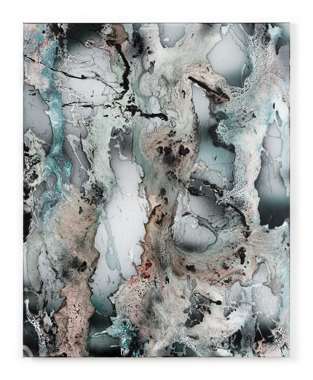 Patricia Low is delighted to present an exhibition of new and recent paintings by Hungarian artist Márta Kucsora. Less Orderly Ways marks the artist’s second solo exhibition with the gallery and her first at Patricia Low Venezia. United by their particular hue, or light palette, the works on view date from 2021 to 2024. Forms reminiscent of twisting vines, cellular matrices, and lava-like formations in greens, blues, pinks and gold occupy the canvases, each one alive with a sense of movement. Kucsora‘s richly layered abstractions, with their various splashes, flourishes, and calligraphic lines, invite active contemplation from the viewer and speak to the abundantly ornamented identity of Venice itself. A continuation of Kucsora‘s investigation into living processes, the works on show are all created by means of a fluid experimentation with water-based, organic chemicals poured on large-scale linen canvases in an afternoon’s brushless, choreographed performance. The results of this finely calibrated, yet also adventitious, dance of pigments, activators and retarders, are surfaces composed of layers of thin paint whose forms variously evoke biological structures or cosmological phenomena. A collaboration between the conscious and the unconscious, between the premeditated and the uncalculated, Kucsora‘s liquid ecologies constitute a kind of alchemy mediated by the relationship between artist and material.