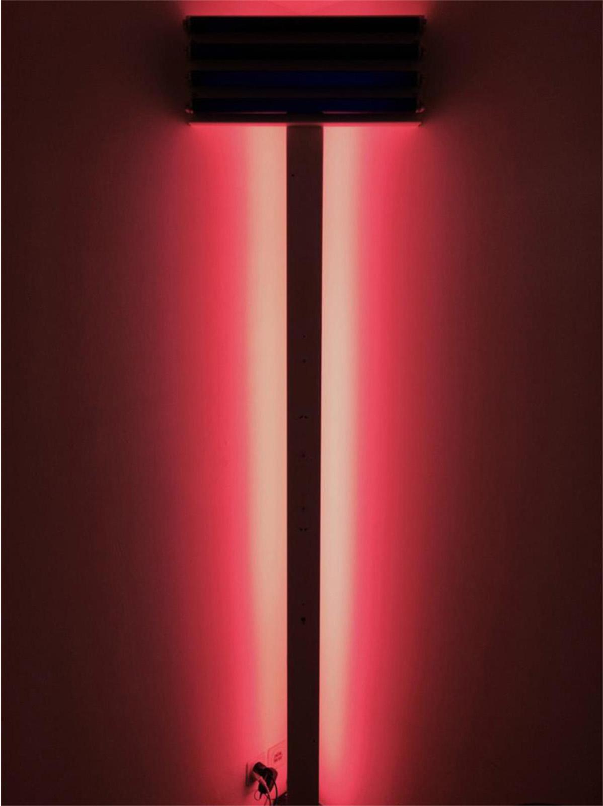 ‘Without the customary directional indicator (il-) the various applications of the concept of lumination weaken the distinction between subject and object, active cause (to luminate) and passive effect (also to luminate, tantamount to being luminated). Flavin’s light has neither object nor objective. It merely lights, like an eye that sees without insisting on a point of view or establishing an organizing perspective. Flavin’s light happens.’
