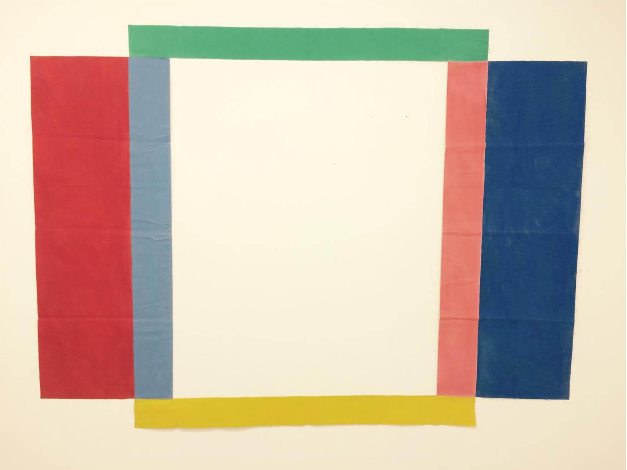 Louis Cane, a central member of the postwar French association Supports/Surfaces, uses commercial painting procedures—like Olitski, the spray gun, but to very different ends—and an emphasis on materials, lengths of unstretched painted canvas extending in modular panels from ceiling to floor, or presented as an open frame exposing the ground and support behind. All of this is to underscore the physical qualities of painterly light, in a way that can be seen on the same axis along which I have positioned Flavin and Olitski.