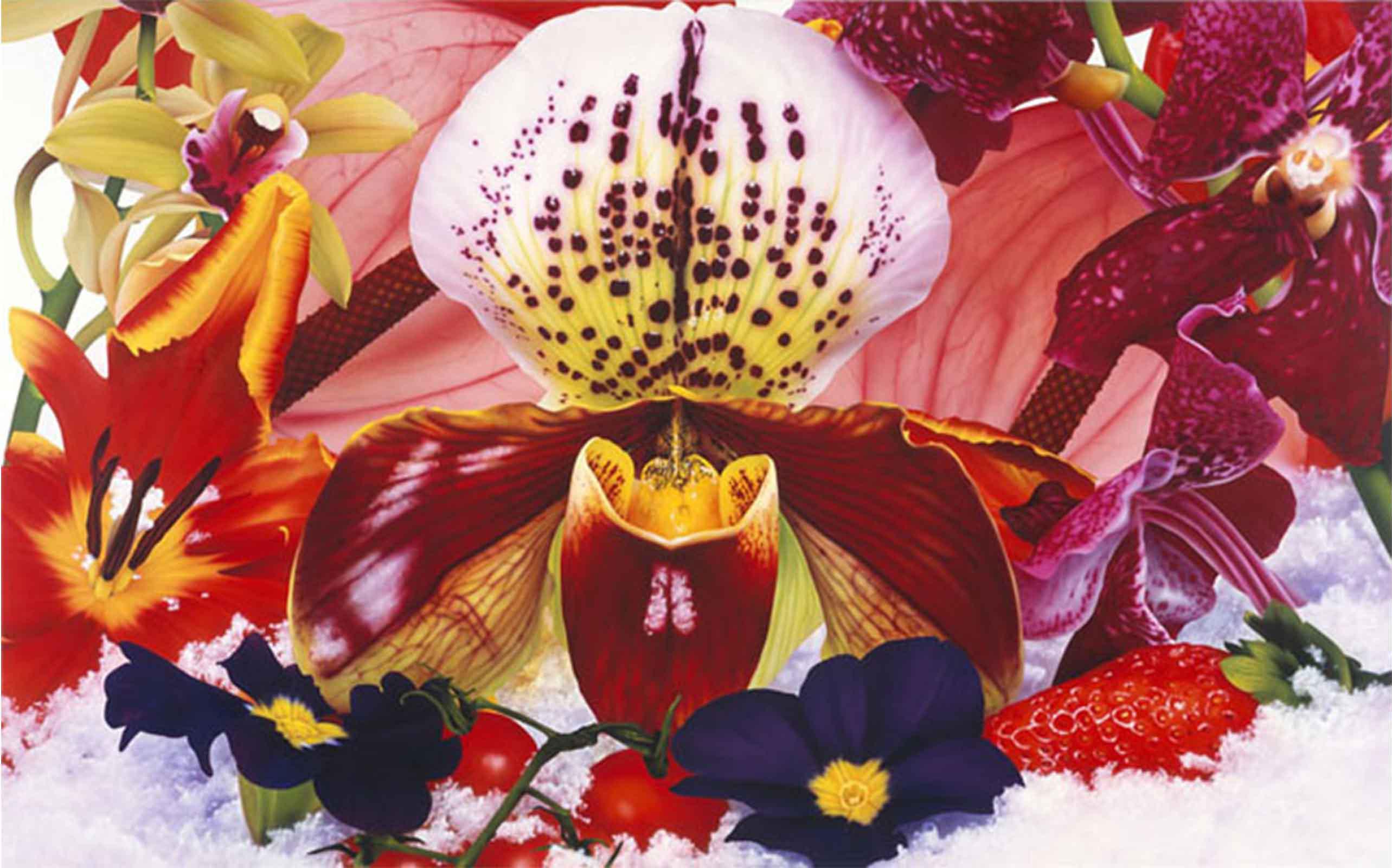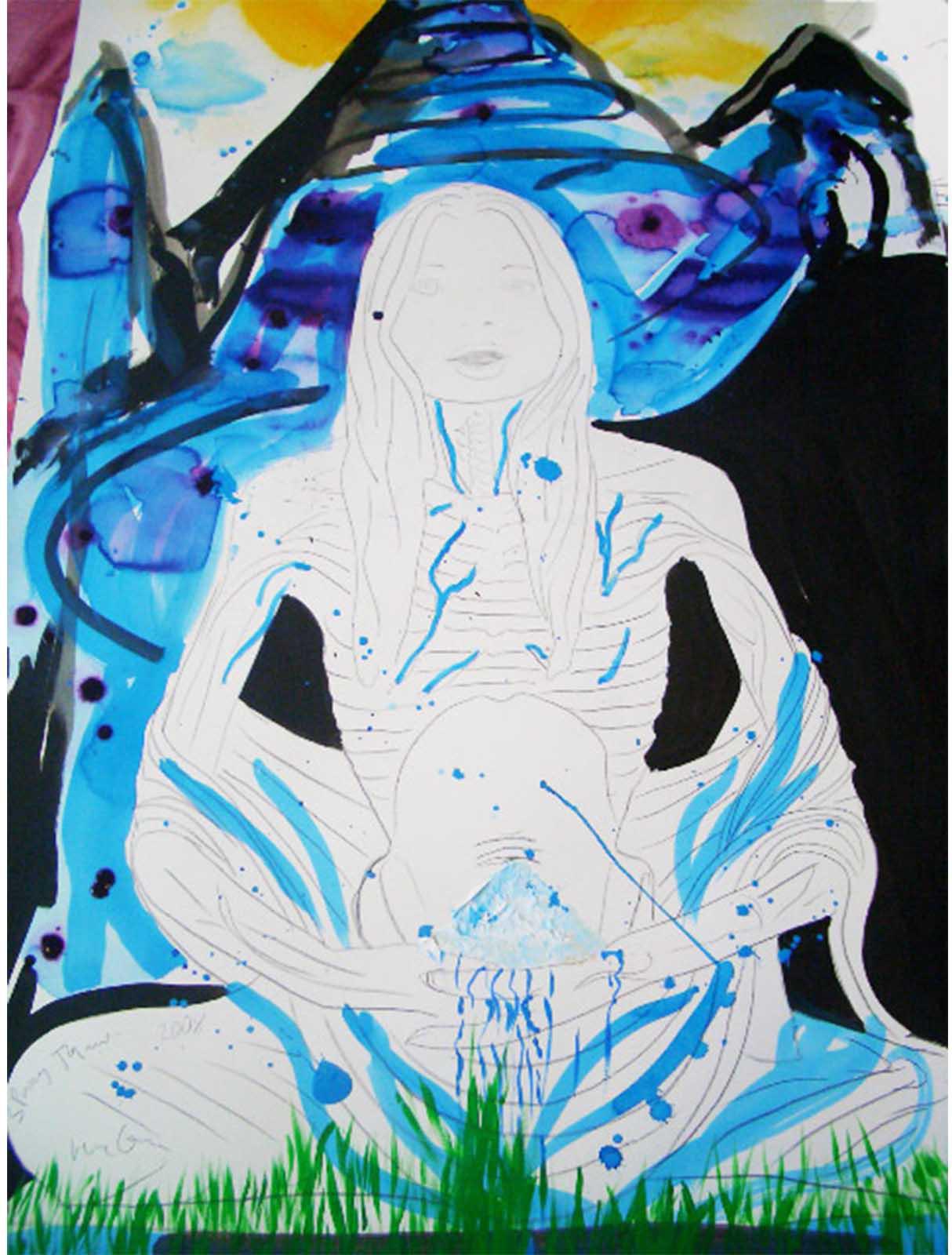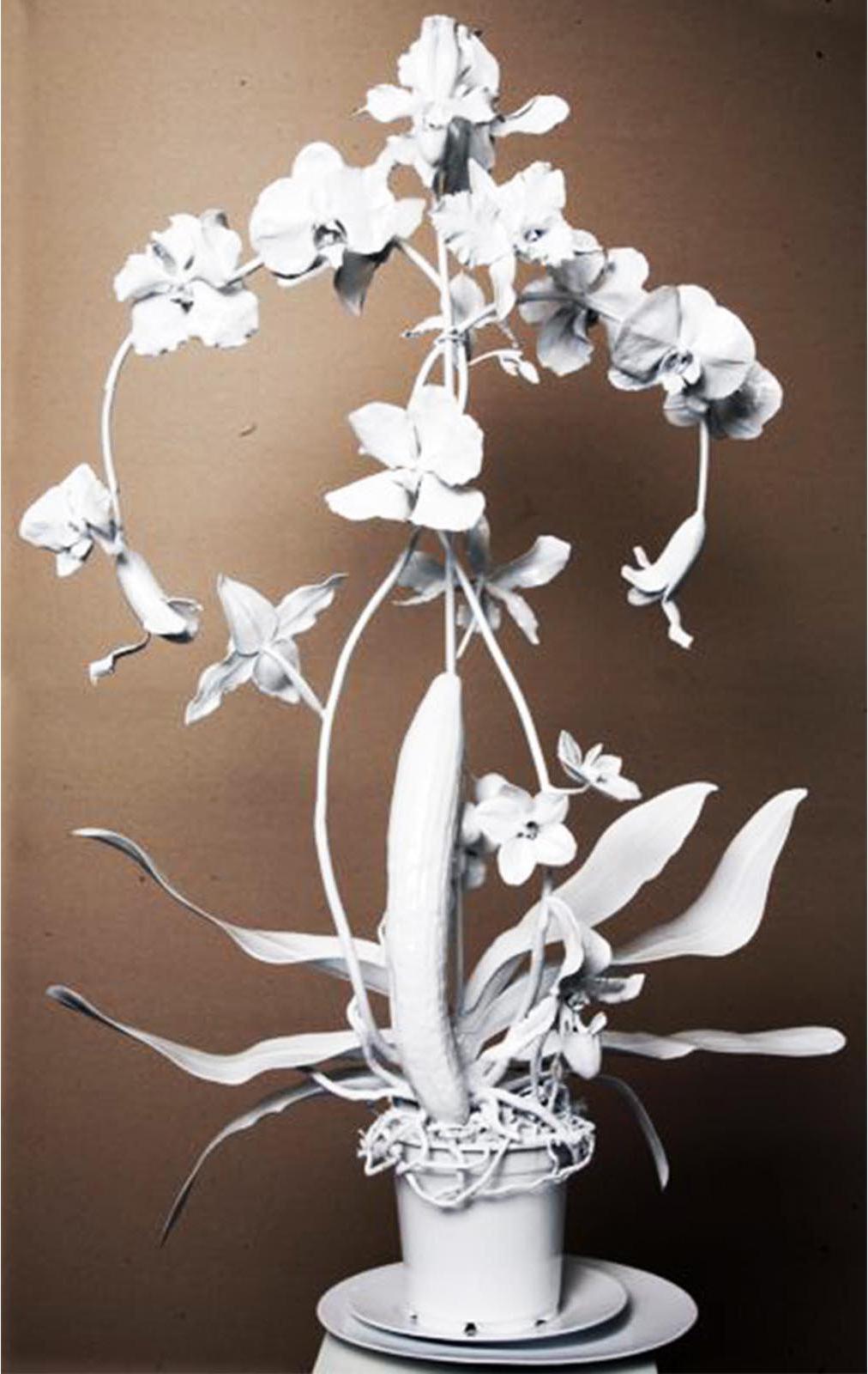 His recent Kate Moss sculptures pose super-model as yogi-Buddha, emaciated, contorted, and deformed; a waif goddess bestowing the blessings of vacuous malnourished serenity, tranquillity in angelic grotesquery. Coupled with larger sculptures, a cherub and floral still-life exquisitely executed in bronze, his works become infused with classicism’s timeless authority: the fragility of nature and youth made eternal, immortal, undead.