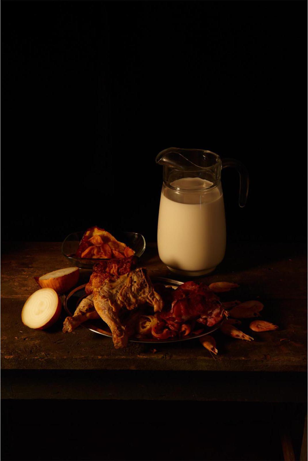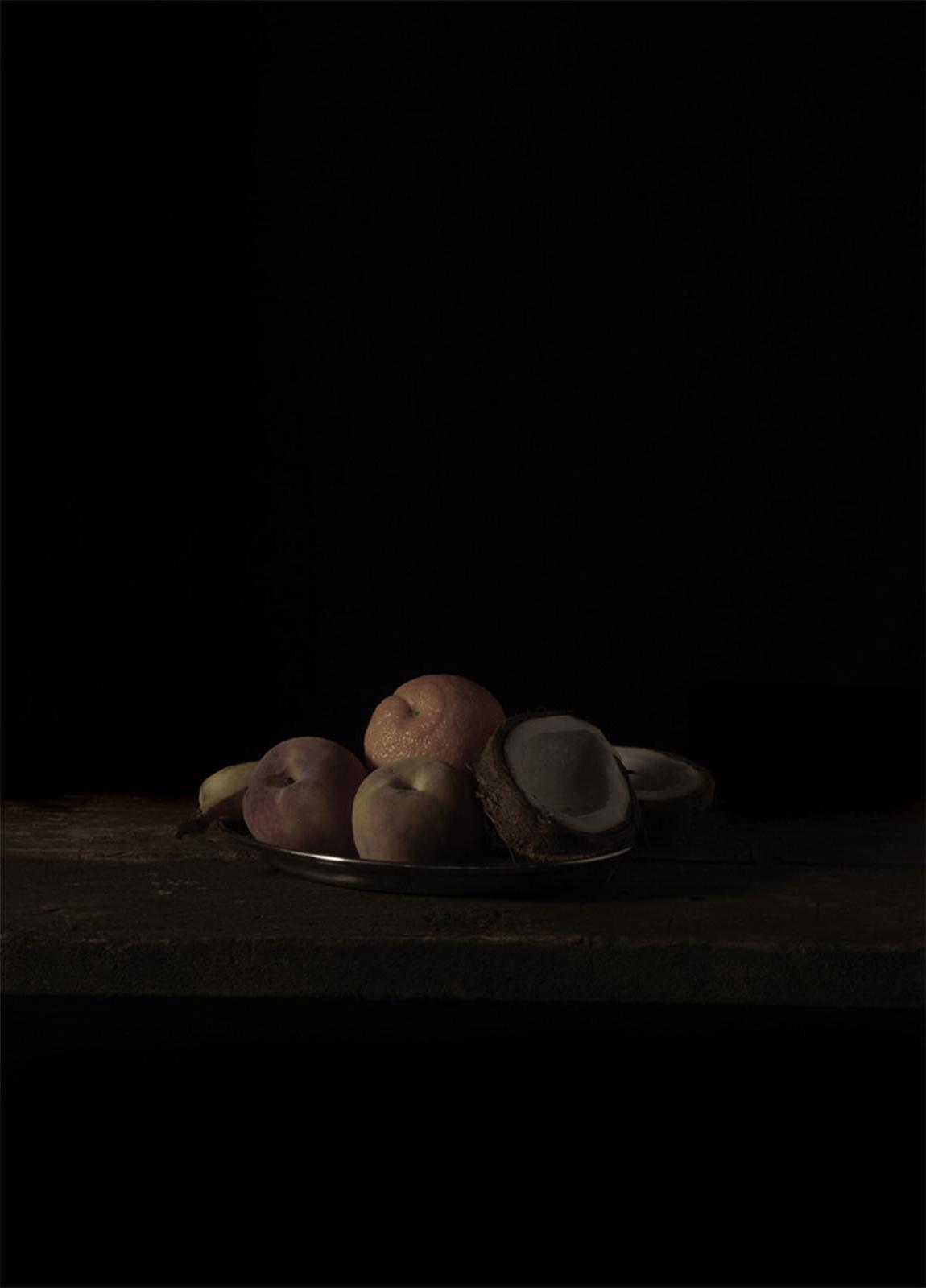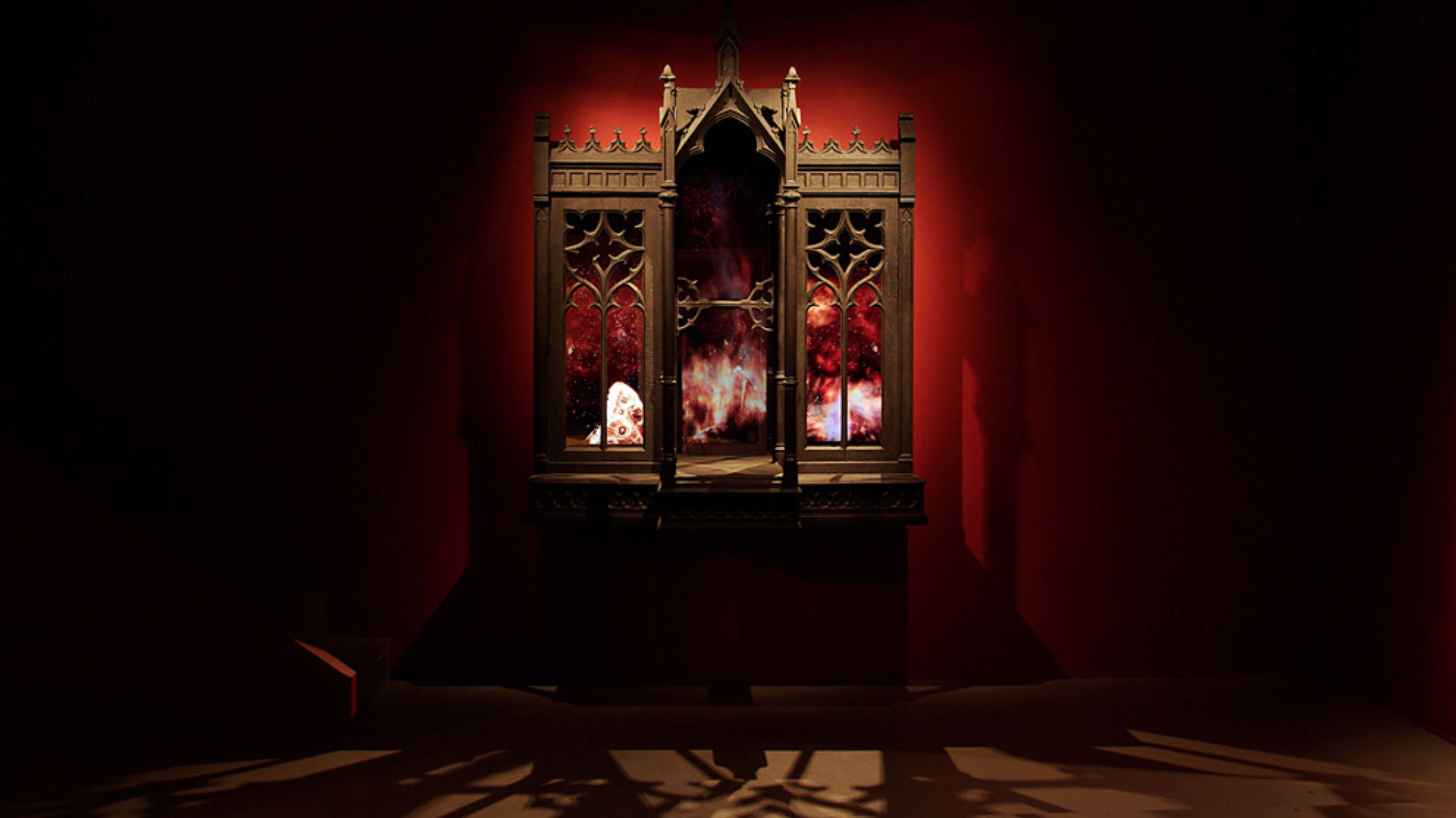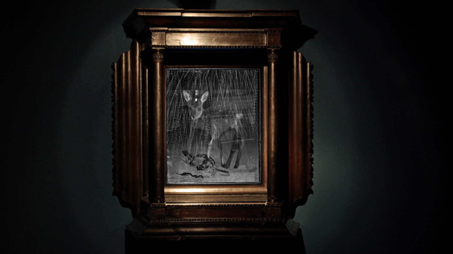Collishaw suggests that ‘in the act of producing any work, there has to be some form of sacrifice, even if only the surrendering of reality to the invention of the artwork’. The reliquary cabinet in his piece titled Invisible Game would have traditionally been used as a means of preserving and venerating the physical remains of Saints. An end has to be met (that of the saint) before the cabinet can function, and Collishaw lures the viewer in to witness the impending sacrifice of the sufferer; a trapped fawn, helplessly awaiting it’s fate. The burning flower and butterfly photographs depict a similar dependency, the very process of their production demanding the demise of the subject, of beauty thwarted by the flames. The 19th century altarpiece in Performance plays host to a myriad of butterflies that are also struck by a similar fate. The fire heightens the mesmerising quality of this vignette, and the art is created at the moment of loss.