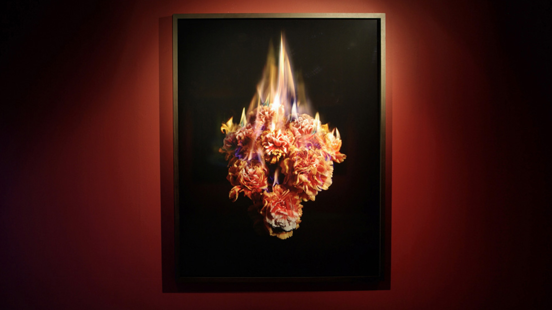 Mat Collishaw’s work has explored the paradox of beauty and horror since his graduation from Goldsmiths in the late 1980’s. His new exhibition at Patricia Low Contemporary continues this, looking more intimately at the subject of sacrifice and it’s relationship with art.