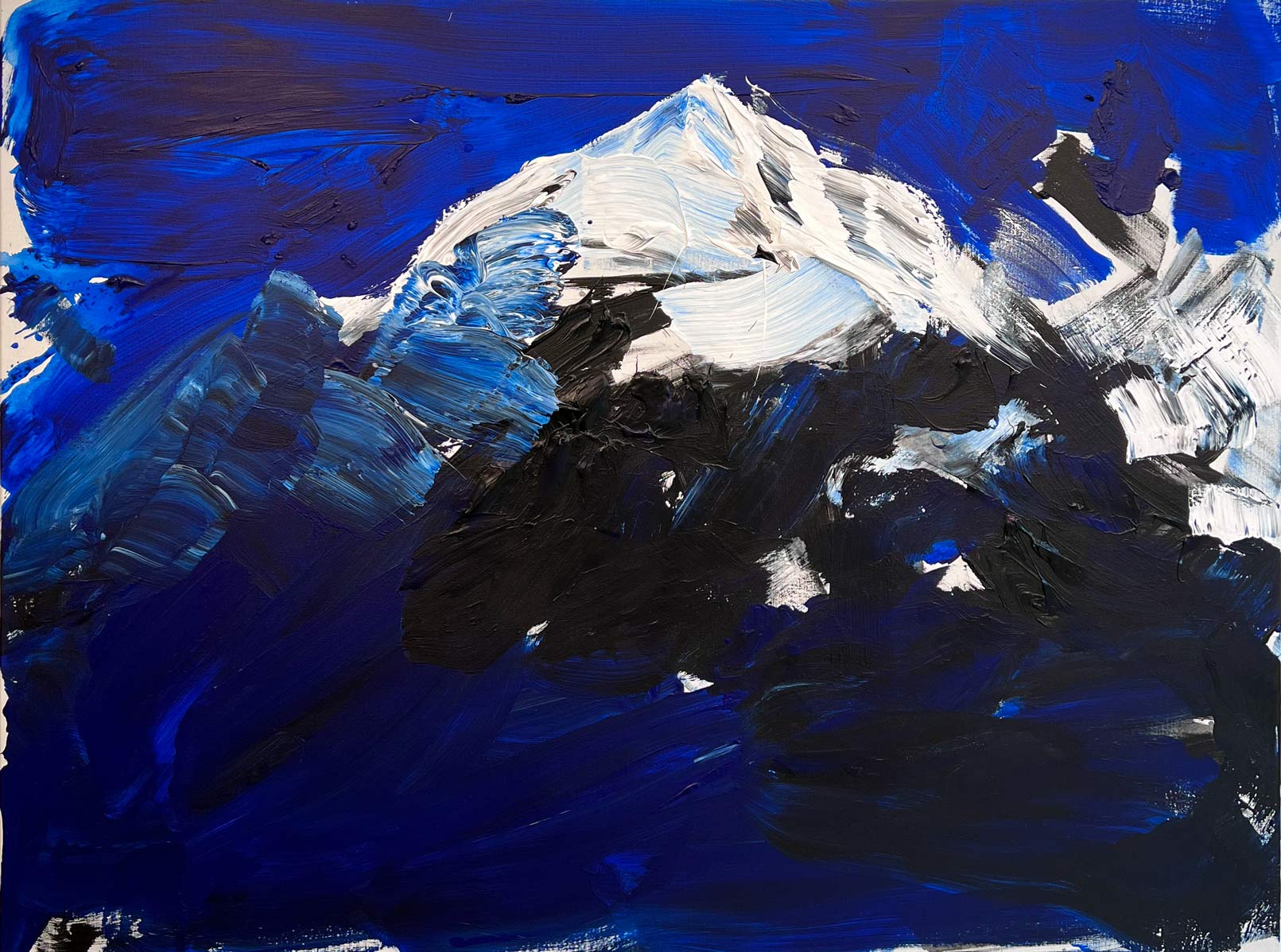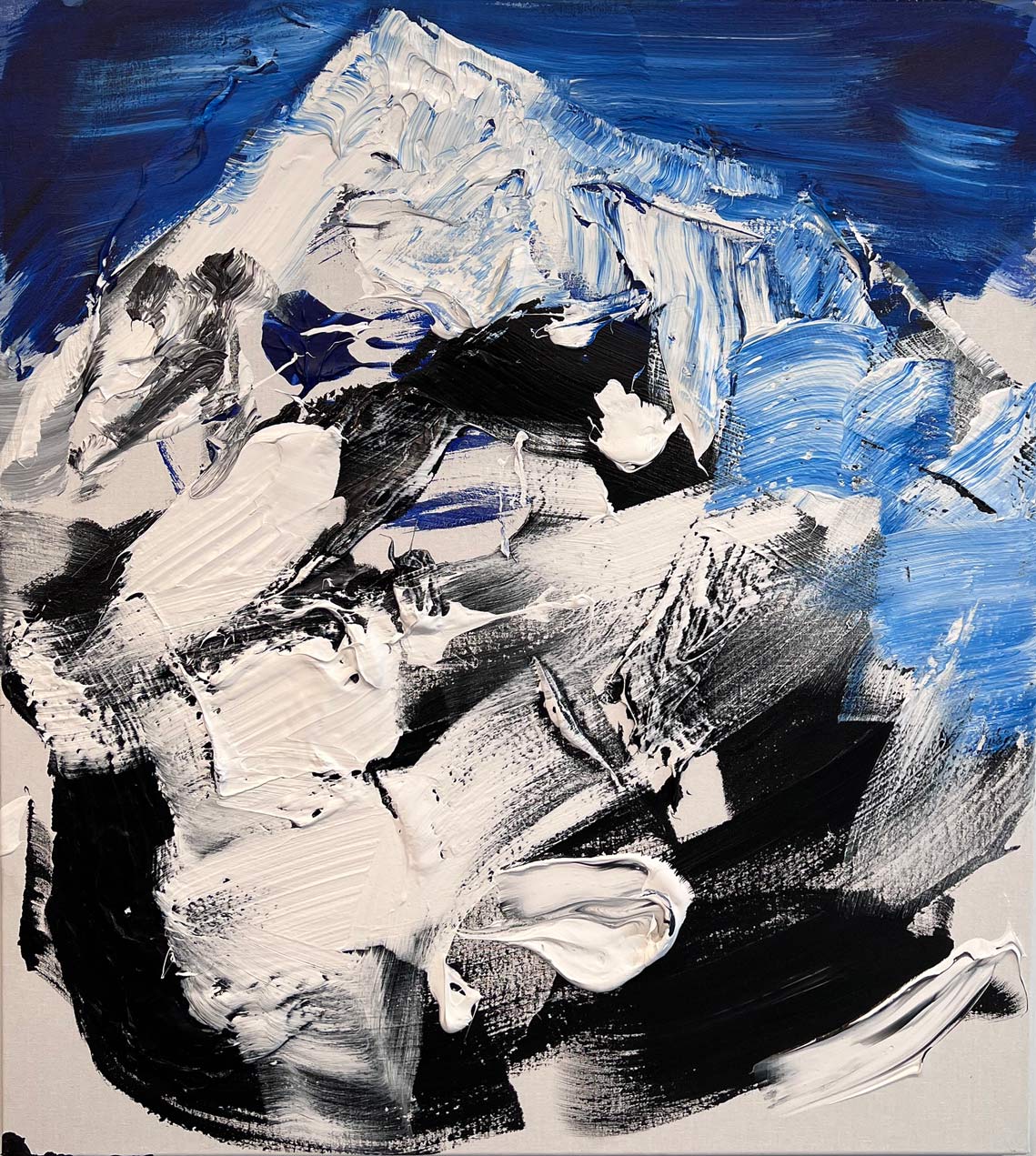 “Living in Gstaad, I’ve tended to resist mountain themes, but Herbert Brandl is really the master of this motif,” says Patricia Low. Seeing the suite of works in the artist’s studio earlier this year, Low was captivated by their vibrancy and power. Large in scale, and executed in acrylic on canvas, the works give expression to the sublime, both in terms of their vivid colours and monumentality. Associated most often with the Neue Wilde movement, Brandl‘s treatment of landscape is profoundly expressive, and his fascination with the impenetrable Mount Everest, for example, is rendered in energetic daubs of black and white paint against a backdrop of resonant midnight blue. Some of the works show the mountain’s jagged peak, others are more suggestive — snapshots of an abstracted topography. With this years-long study, Brandl‘s paintings attempt to capture, in bursts of dramatic brushwork, the ever-changing face and textures of this infamous force of nature.