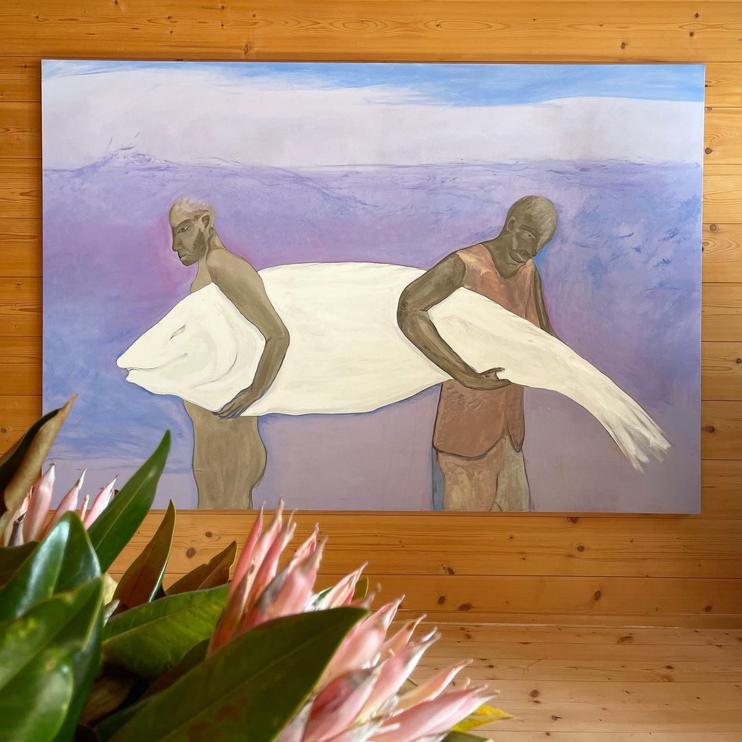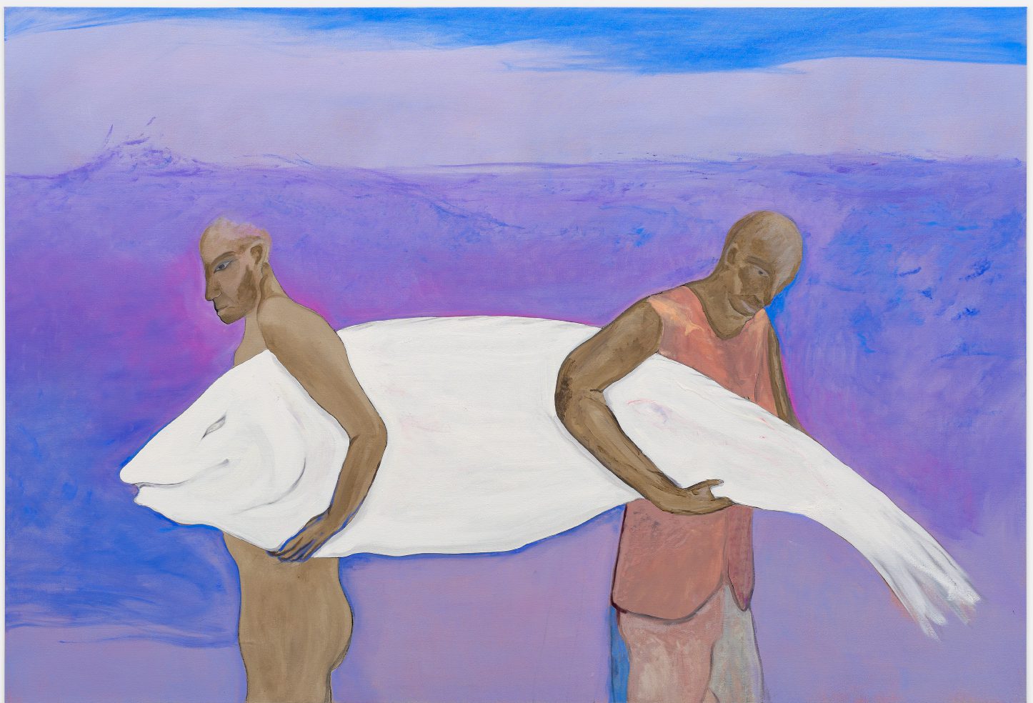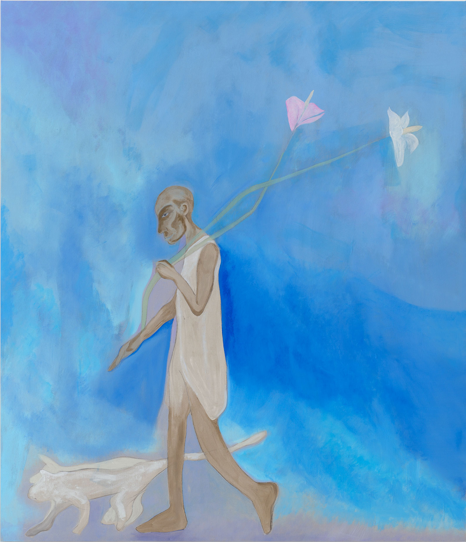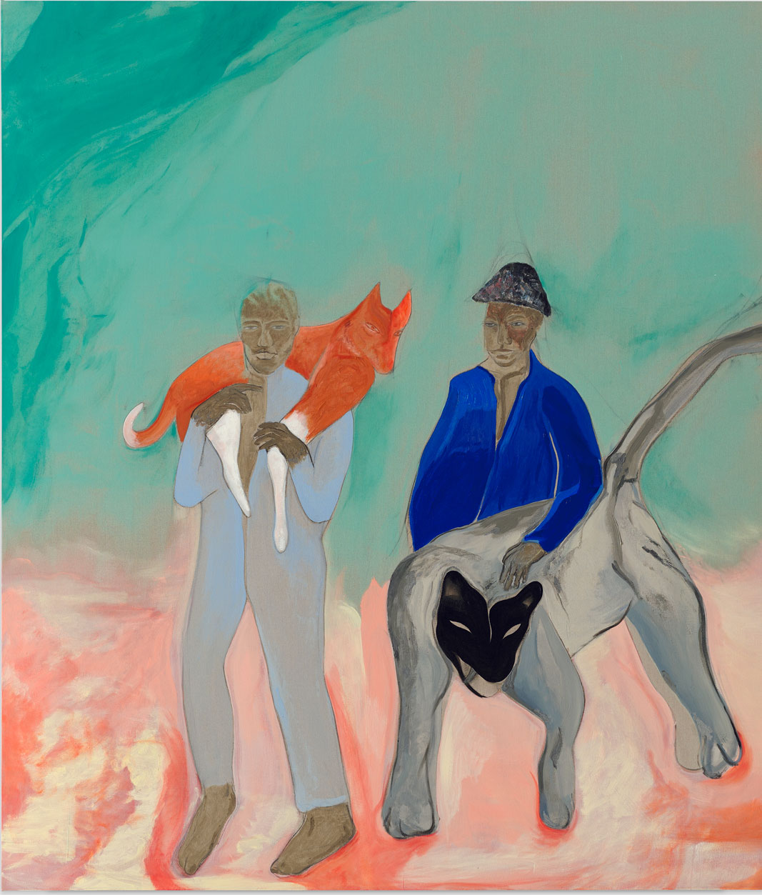 Salvador explores these entangled iconographies and art histories – the proximity and resonances between Europe and South America. The paintings that make up Nuevas Mitologías demonstrate Salvador’s intuitive engagement with the medium, as he navigates light, color and brushstroke to render sublime and enigmatic worlds. Nebulous environments that evade specific location, upon closer inspection reveal as much texture and painterly detail as in the figures. Human and animal figures move together through these landscapes, emerging from the soft, textured pinks and blues of the skyline – extensions of a common spirit. The symbolism in each work gestures to larger histories, yet elicit individual interpretations and affective response.
