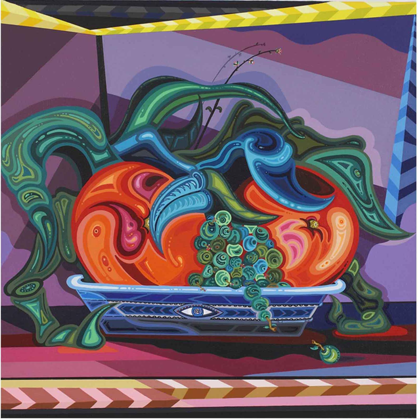 Over the past decade, Erik Parker has forged a reputation as one of the most radical painters of his generation. His works – which veer from graffiti-inspired text compositions, garishly trippy portraiture, lurid ultra-pop still-lifes, to obsessively illustrated graphic fields – aren’t united by genre or style, but rather cohesively reflect Parker’s distinctively idiosyncratic sensibility. Influenced as much by outsider art and sub-cultural memes as by pop, surrealism, and early 20th c. abstraction, Parker describes his approach as ‘blue collar formalism’: his canvases epitomise a punk-ethos redress of art history, thoroughly infused with urban grit.