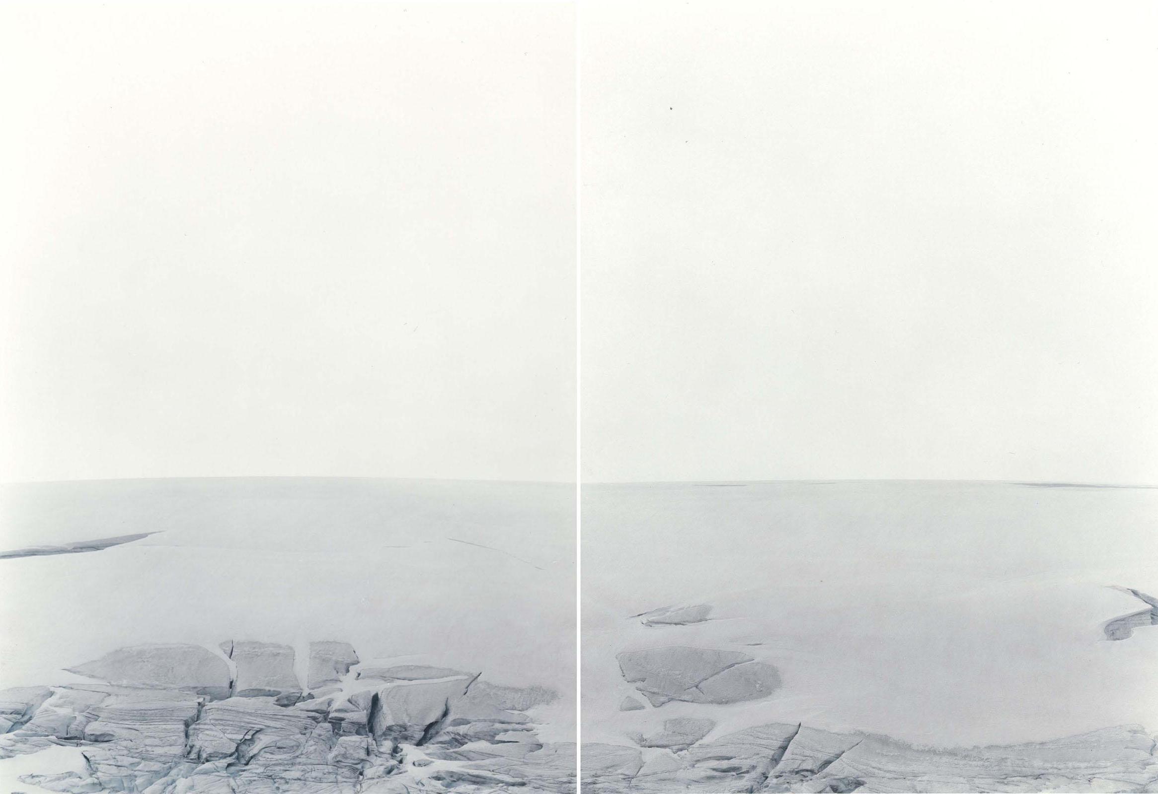 Axel Hütte is the covert Romantic and ‘landscape painter’ among today’s premier-league photographers known as the Düsseldorf School. As an explorer would, Hütte traveled to Alaska, Greenland, Iceland, Norway, Australia, South Africa, Brazil, Germany, America, Kauai and Maui in the past eight years in search for the perfect picture. Armed with patience and a traditional large-format camera, he has waited until weather, season, light and allover conditions were just right at the same time. All these landscapes have a distant and unreal quality. Be it the glaciers with their magical blue gleam or the lush green opulence of sub-tropical jungles, all images are seductively beautiful and equally complicated.