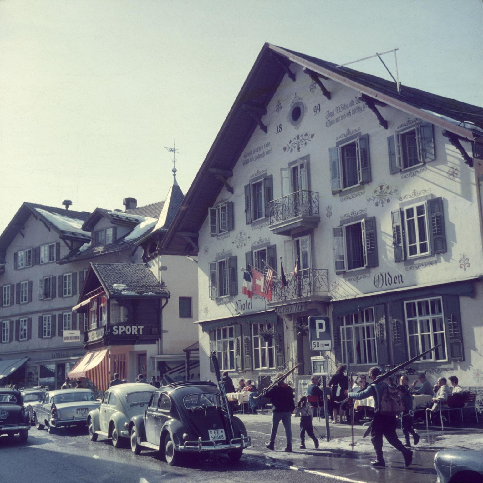 And among those settings? A plethora of photos set amongst the planet’s most fabulous winter backdrops. Though lesser known perhaps than some of Aarons’ most enduring photos — like Poolside Glamour of two socialites chatting in Palm Springs, or Kings of Hollywood of Clark Gable laughing with friends in black tie in Beverly Hills — the snow-speckled photos continue to cast an allure unto themselves. Mary Aarons, the keeper of her father’s legacy, generally favors “the landscapes,” as she calls them.