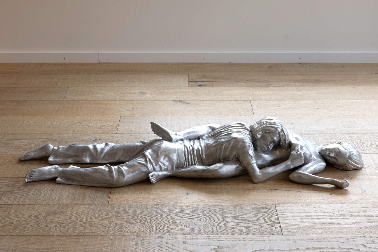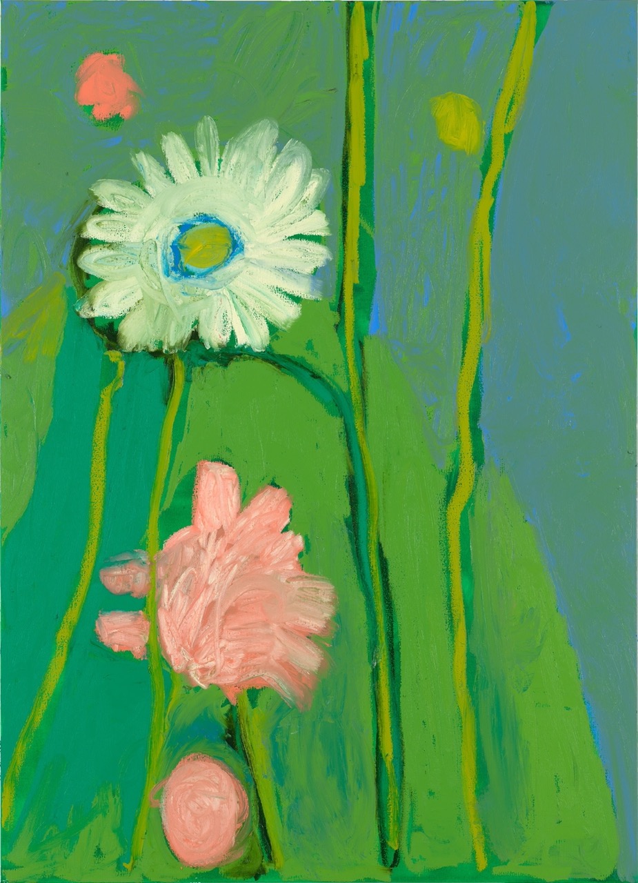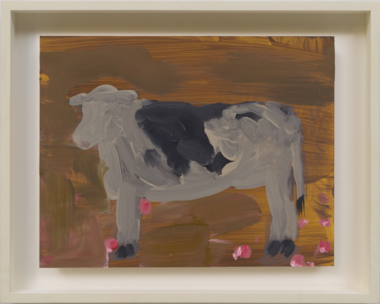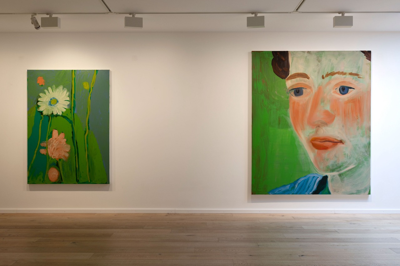 Sculptures are dotted about the first floor, which build upon the forms and materials of previous pieces. A country boy plucks flowers. There is also a series of women made from granite, bronze, and onyx. Goats punctuate the space, moving from the outside to inside, with flowers on their noses. Ceramic plants are scattered about the ground. Together, these works evoke the great Swiss outdoors with knowingly wholesome wit.