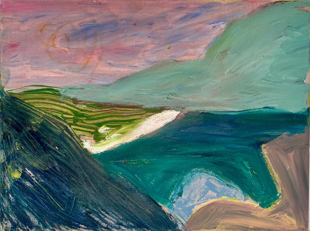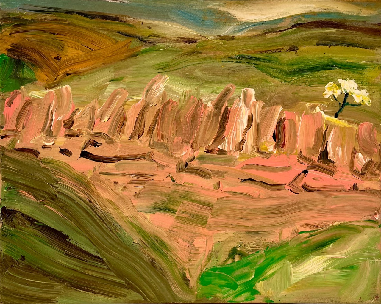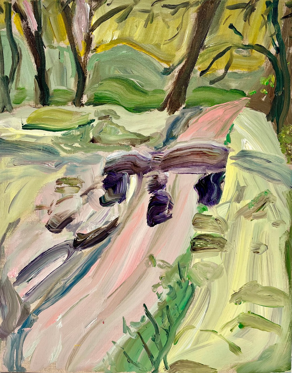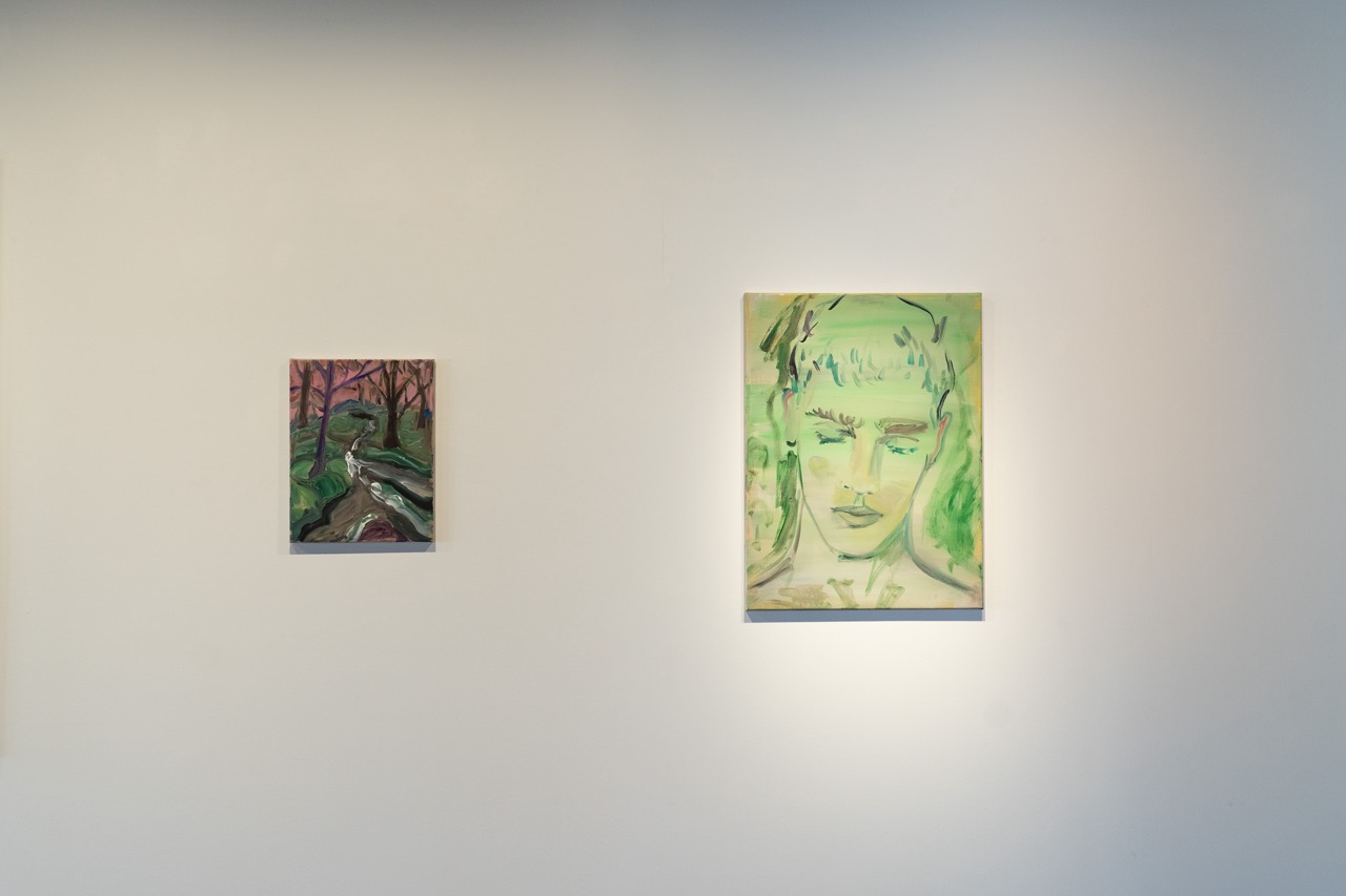 Luke Edward Hall’s solo exhibition at Patricia Low Contemporary, Venice, is set in ‘The Silver Vale’, a place where mythology and personal identity merge, where landscape and fantasy dissolve into one another. The exhibition presents new paintings created by Hall in his Oxfordshire studio over the past few months. The starting point for this new body of work is the large painting XXX made in September 2024—a vision of Pan, the Greek god of the wild, leading a figure into a glowing, dreamlike woodland. This moment of initiation, at once intimate and ecstatic, became the catalyst for a series of paintings and drawings that examine queer identity through the lens of mythology and nature.