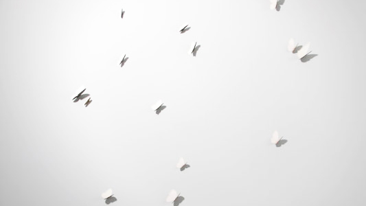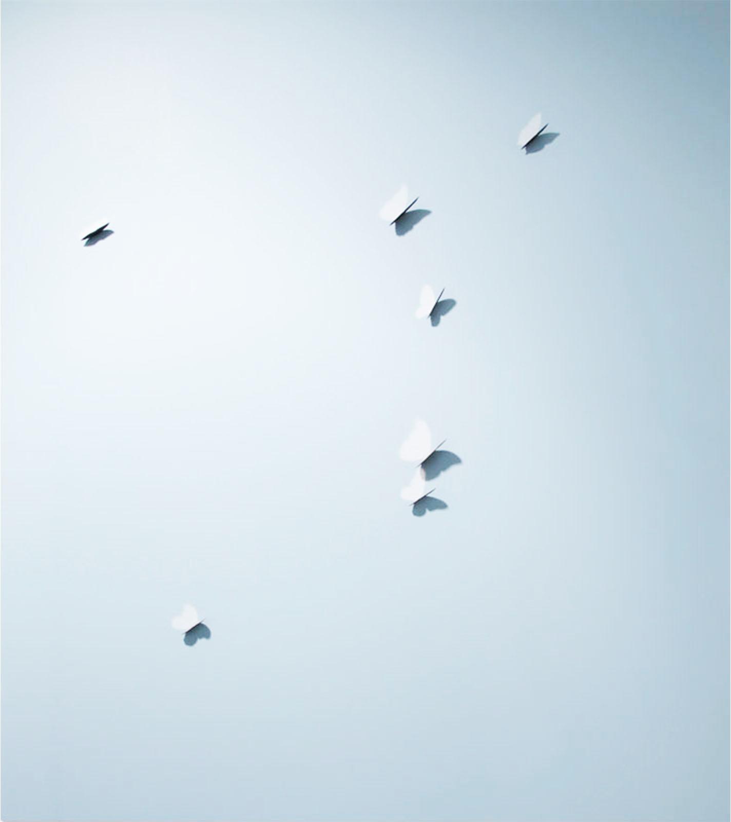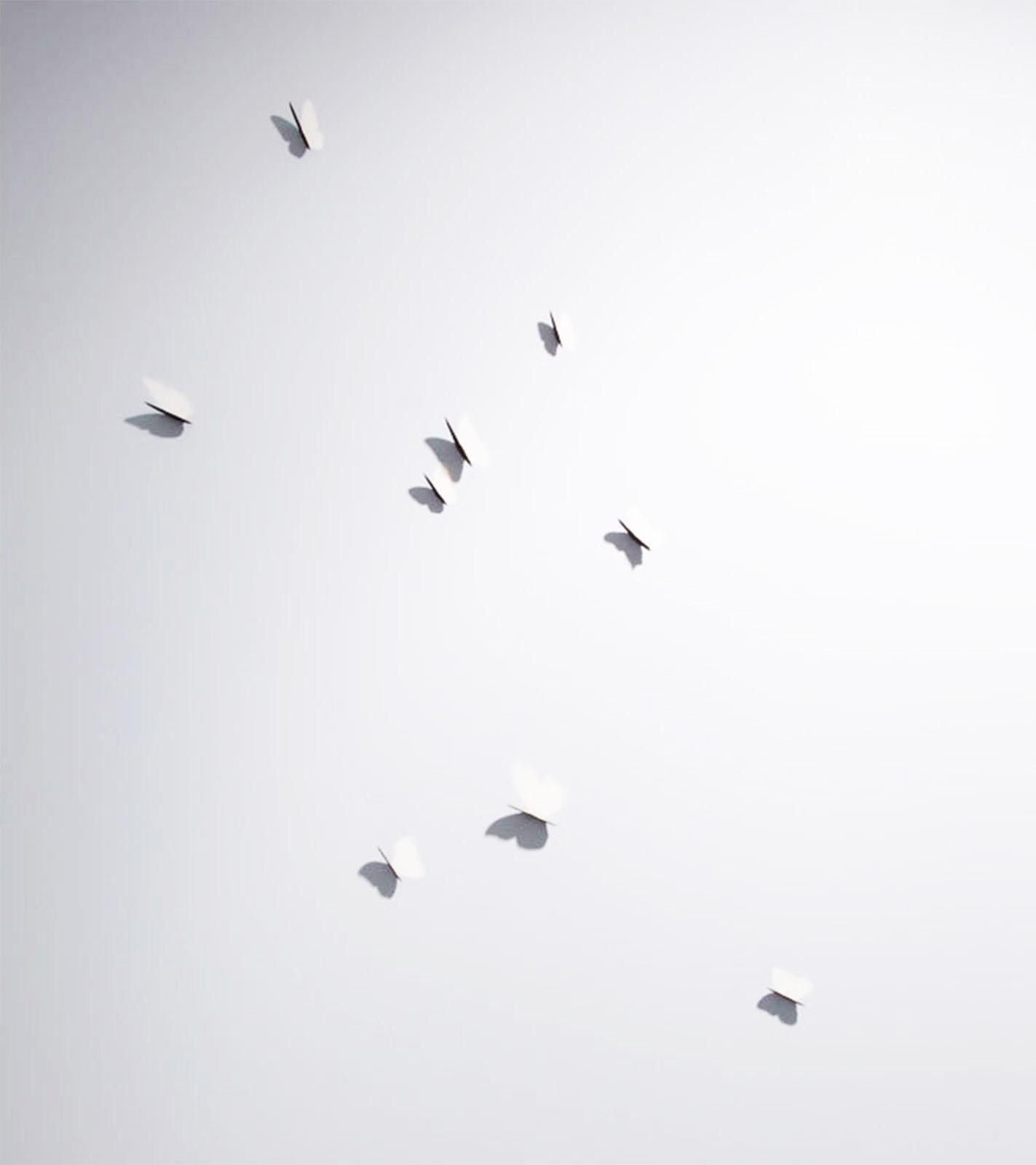 Less images than manifestations, Hosking’s Thoughts (Butterfly) paintings are sumptuously delicate fields of pale hue, fluttering brass wings cutting into the aluminium panels. Their simple paradox – the allusion to nature’s delicacy rendered in hard metal, deflection of minimalism’s logical objecthood, and sly denial of the elementary function of surface – is deceptive in the magnificence of their effect. With Zen-like perfunctory Hosking’s bare opposites amalgamate, magically, as a totality of everything: all that is humble and fragile, fleeting and muted, culminates as nothing short of the purely sublime.